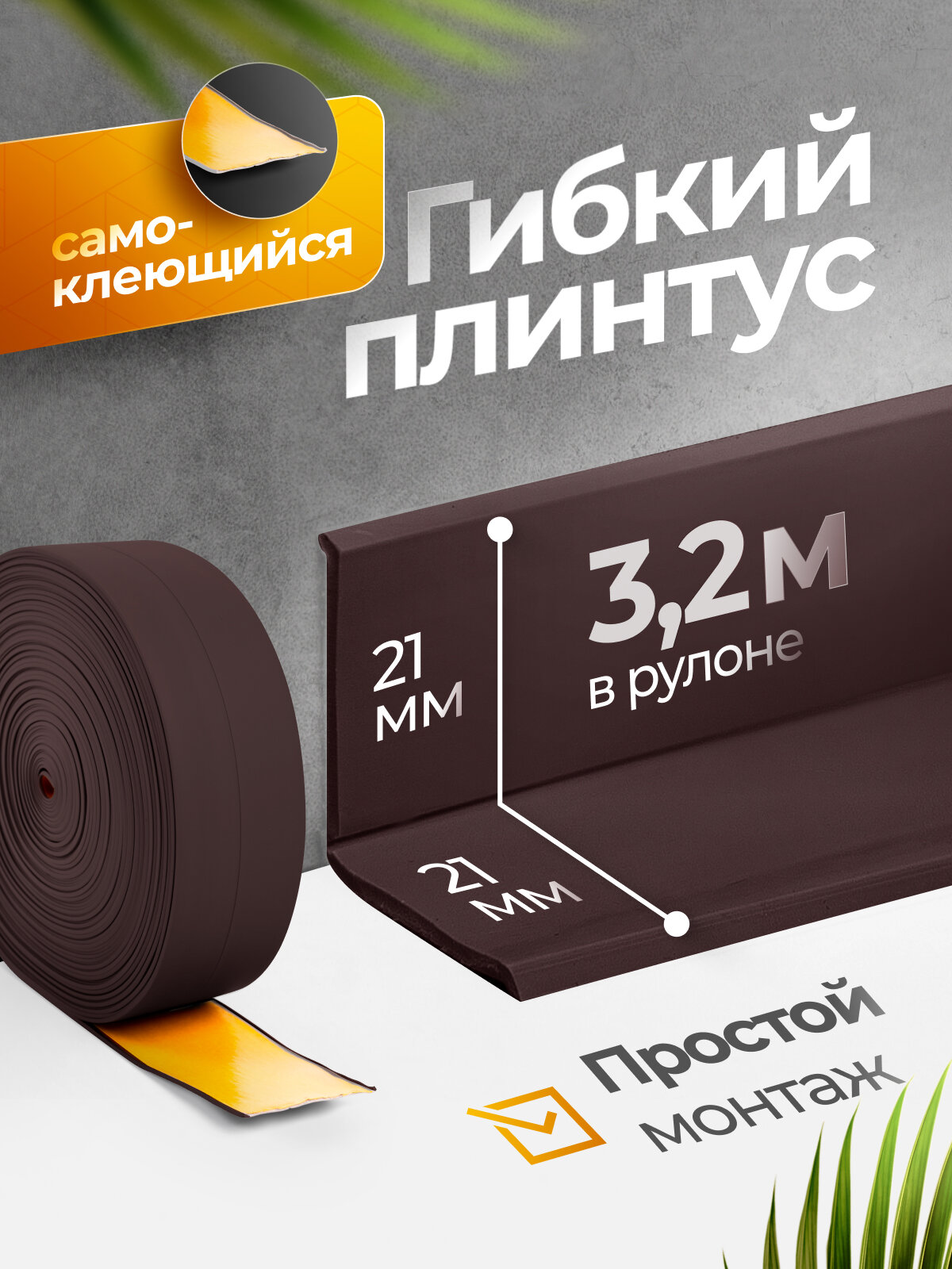 СохранитьПлинтус гибкий напольный самоклеящийся 4.2 см х 3.2м коричневый интересное:
