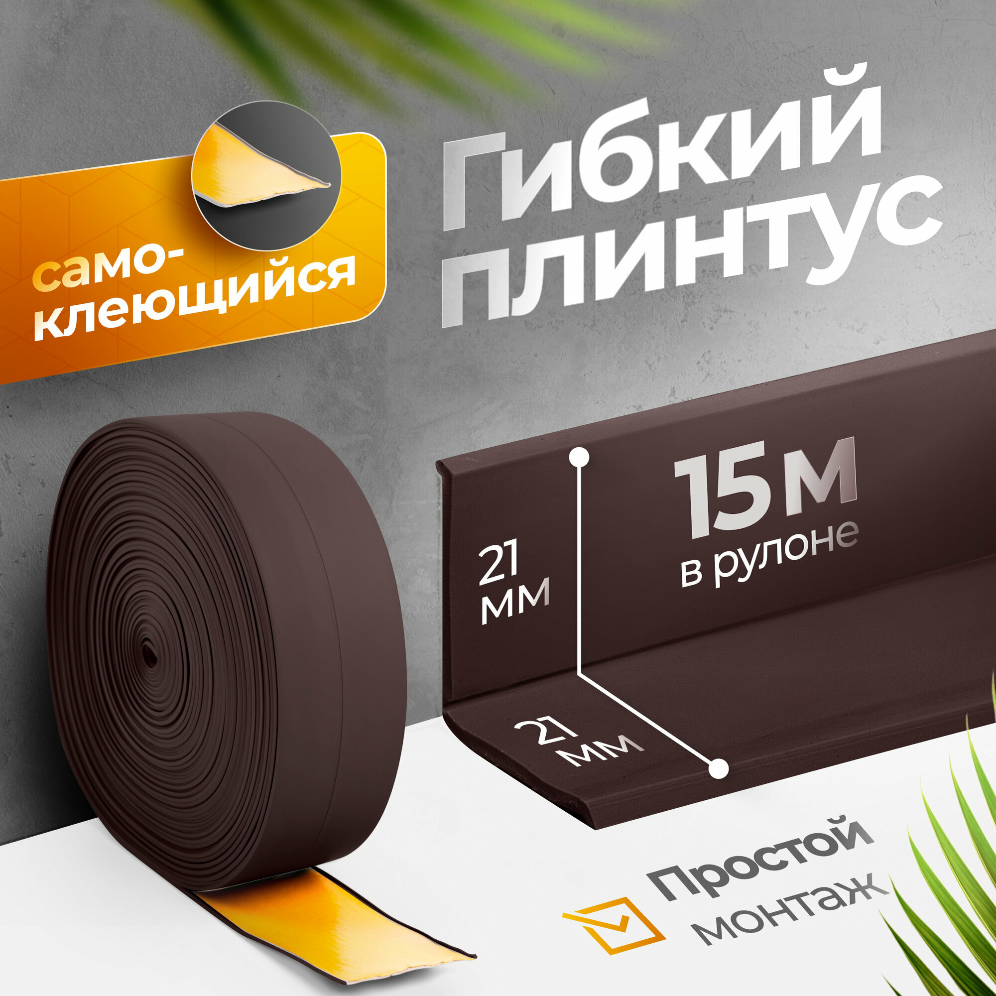 СохранитьПлинтус гибкий напольный самоклеящийся 4.2 см х 15м коричневый интересное: