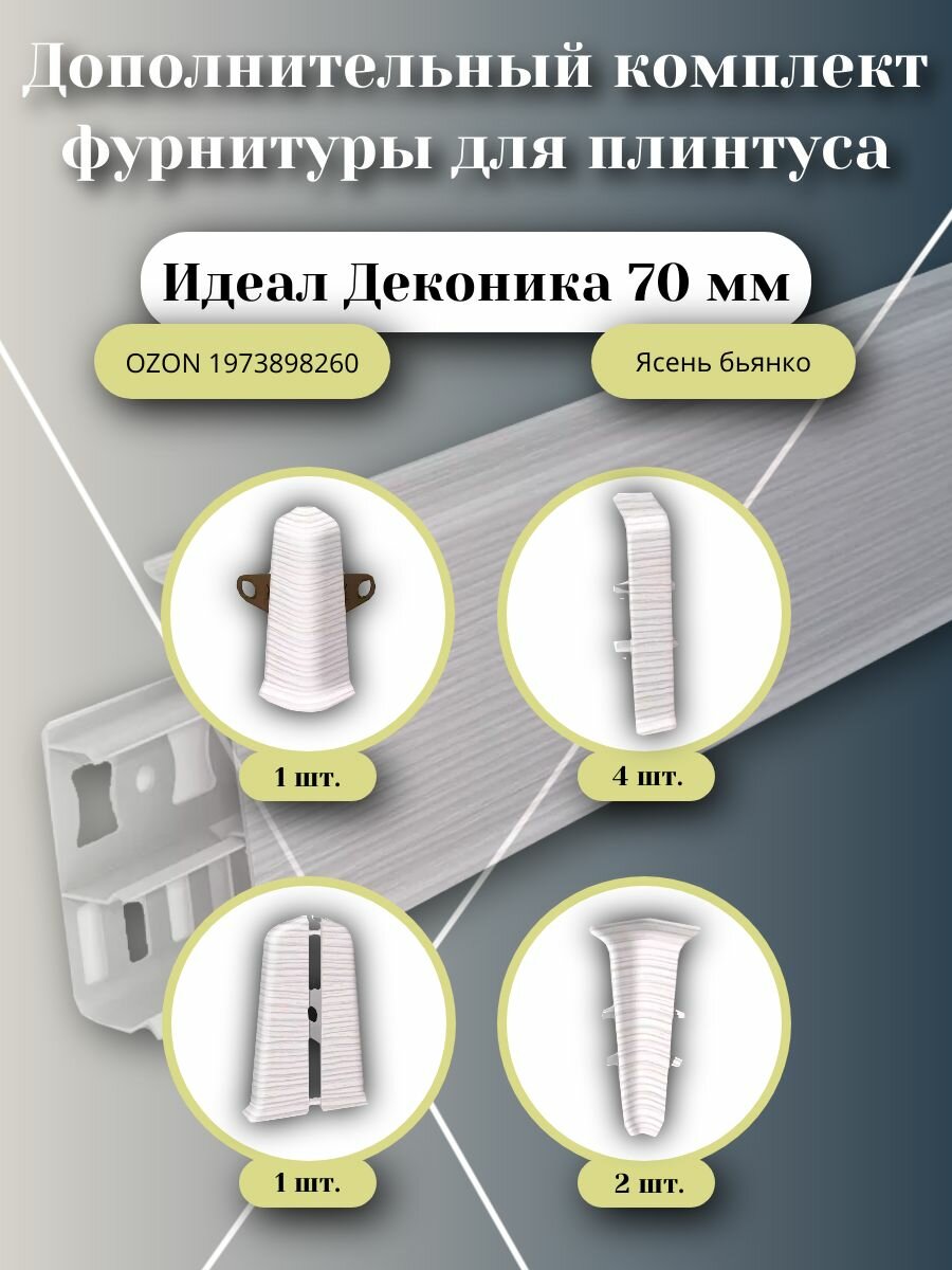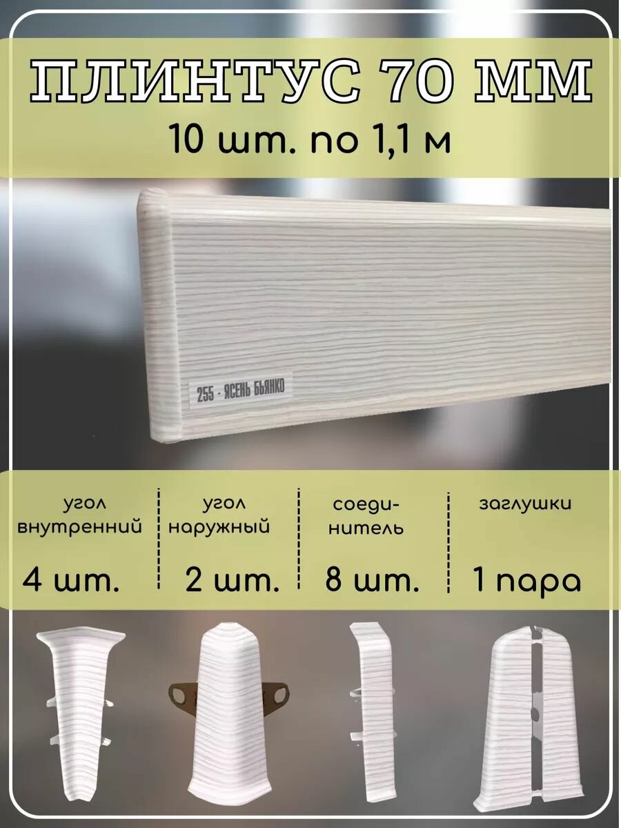Купить Плинтус напольный Ясень Бьянко Deconika 70 мм (комплект)