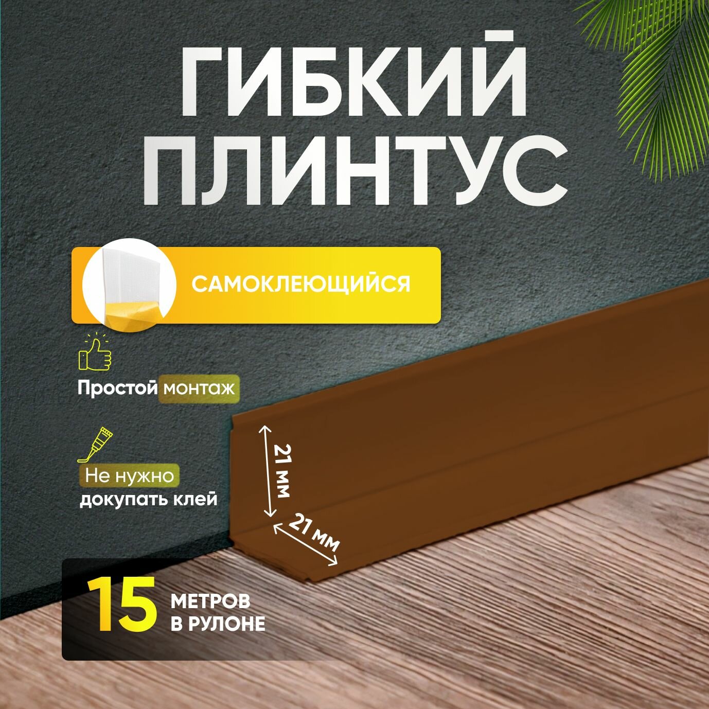 СохранитьПлинтус гибкий напольный самоклеящийся 42мм х 15м светло-коричневый интересное: