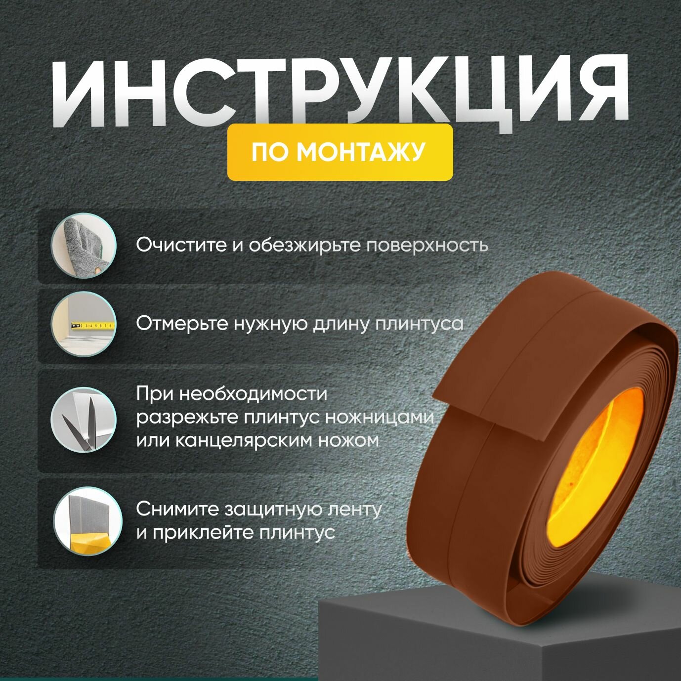 Плинтус гибкий напольный самоклеящийся 42мм х 5м Коричневый