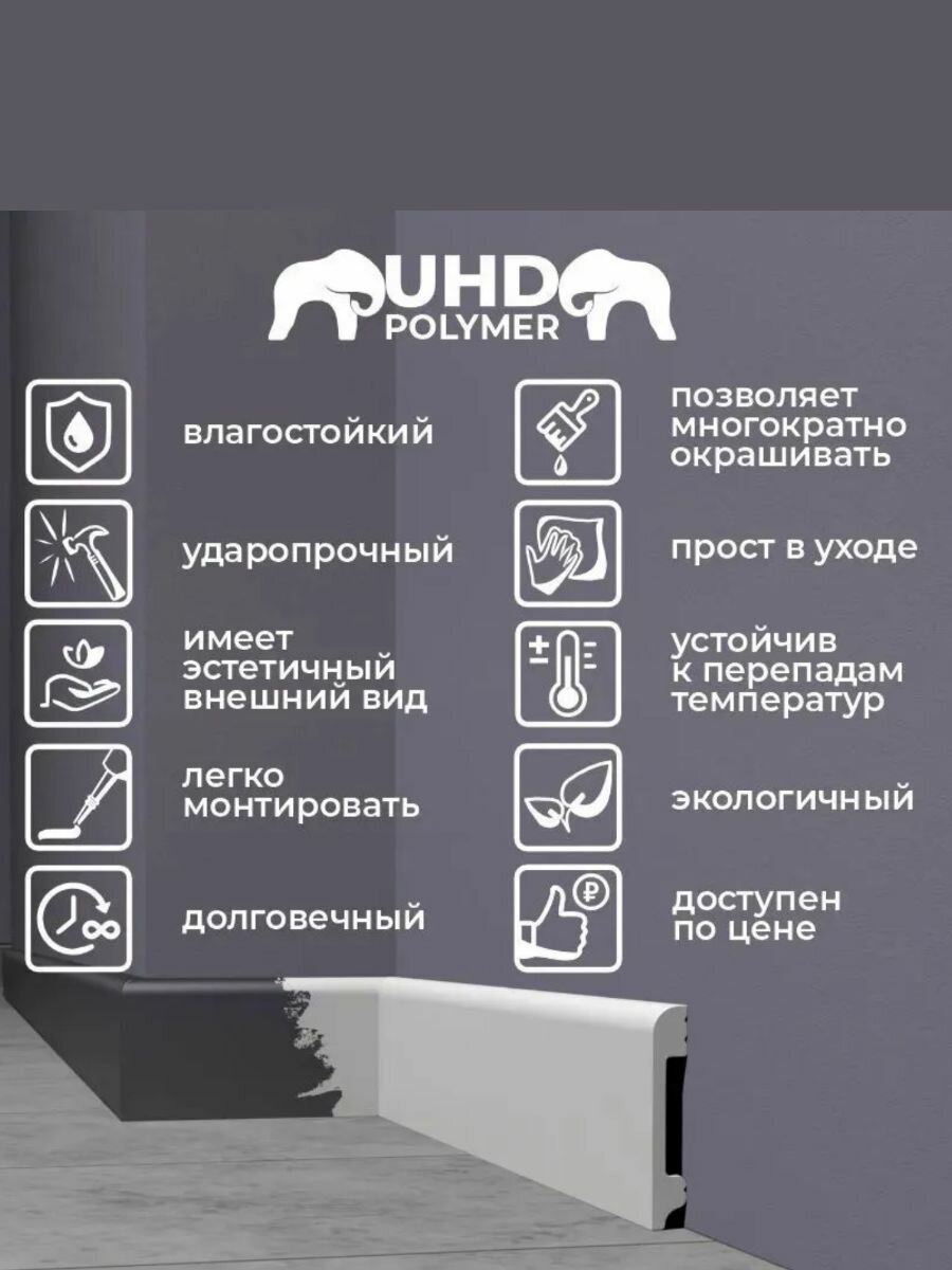 Плинтус напольный из полимера UHD 01/80, белый, L 2.4м интересное: