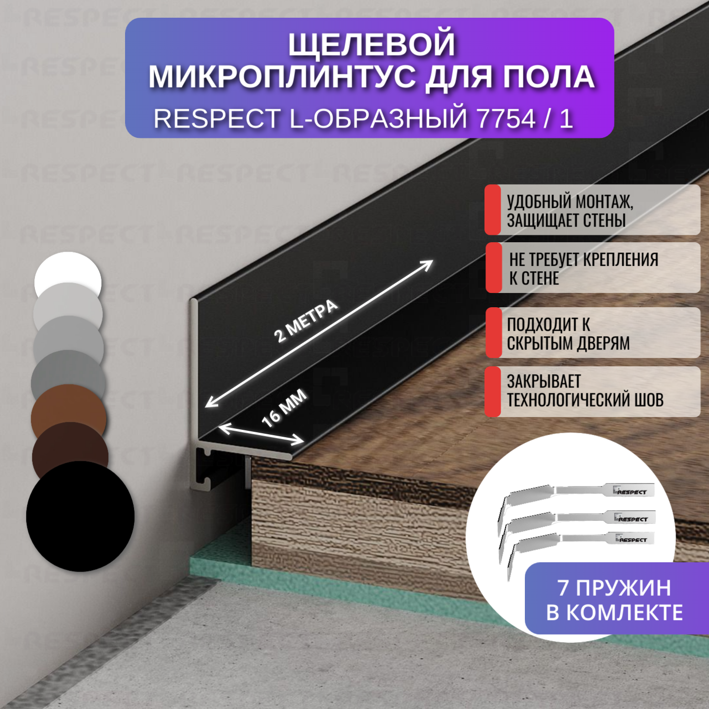 СохранитьПлинтус напольный щелевой для пола L-образный 2 метра 1 шт, цвет черный матовый интересное: