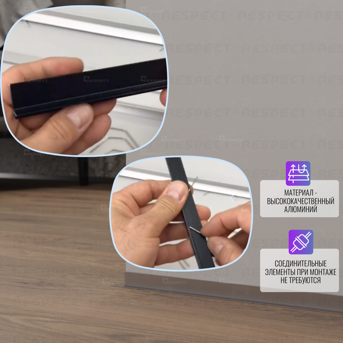 Плинтус напольный щелевой для пола L-образный плинтус 2 метра 3 шт, цвет черный матовый