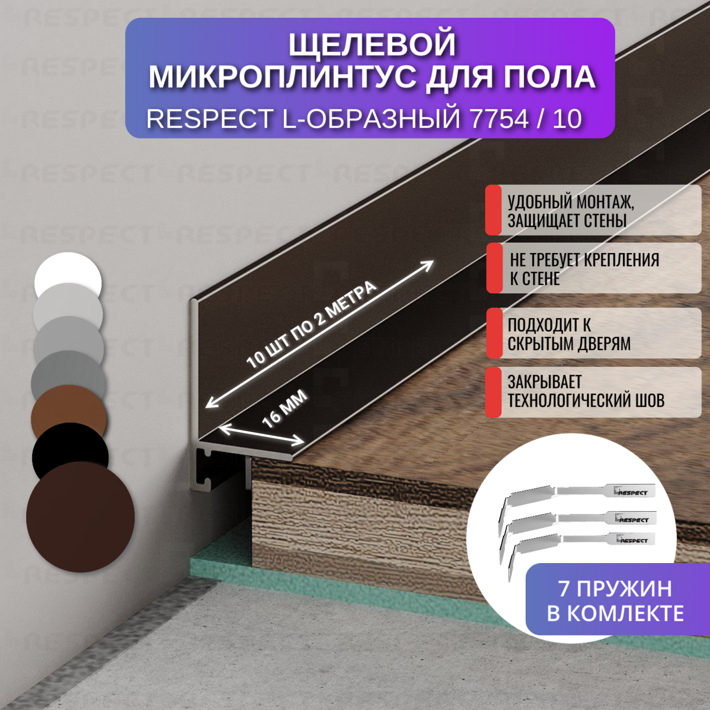 СохранитьПлинтус напольный щелевой для пола L-образный 2 метра 10 шт, цвет крашенный коньяк по шкале RAL 8017 интересное: