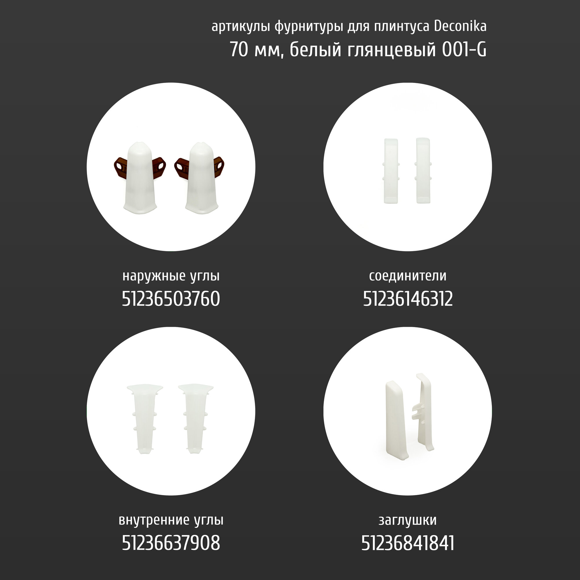 Плинтус напольный 70 мм 2,2 м "Деконика", 001 белый, 1 шт (НЕ забудьте приобрести комплектующие К плинтусу)
