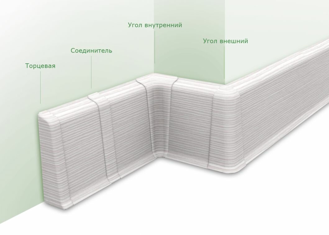 Пластиковый плинтус Идеал Деконика 85 мм Белый глянцевый 001-g