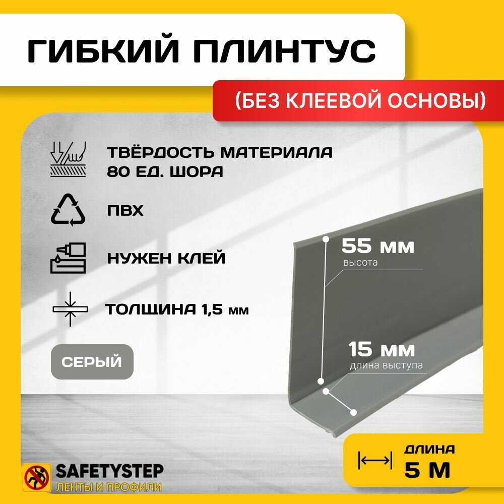 Гибкий плинтус напольный усиленный, 70 мм х 5 метров, серый интересное: