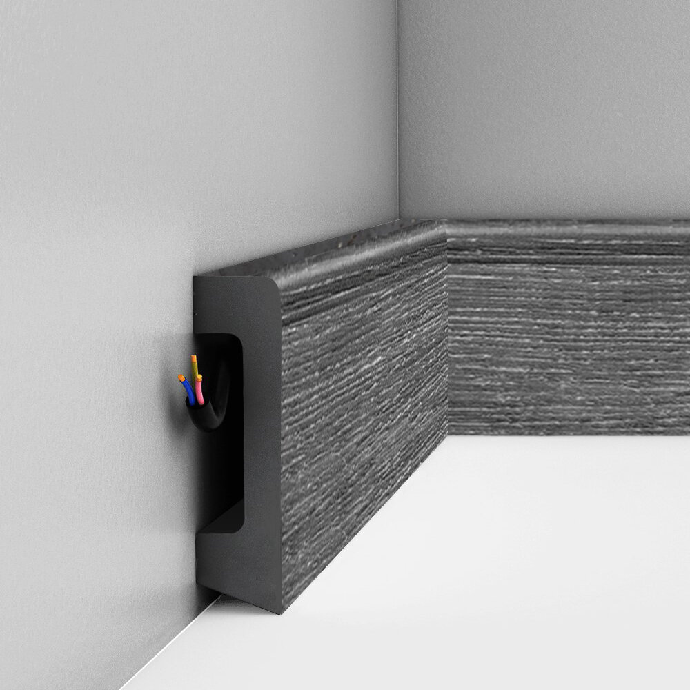 Плинтус дюрополимер напольный DECOMASTER (декомастер), 58х16х2400 мм, D234-112G ДМ антрацит глянцевый