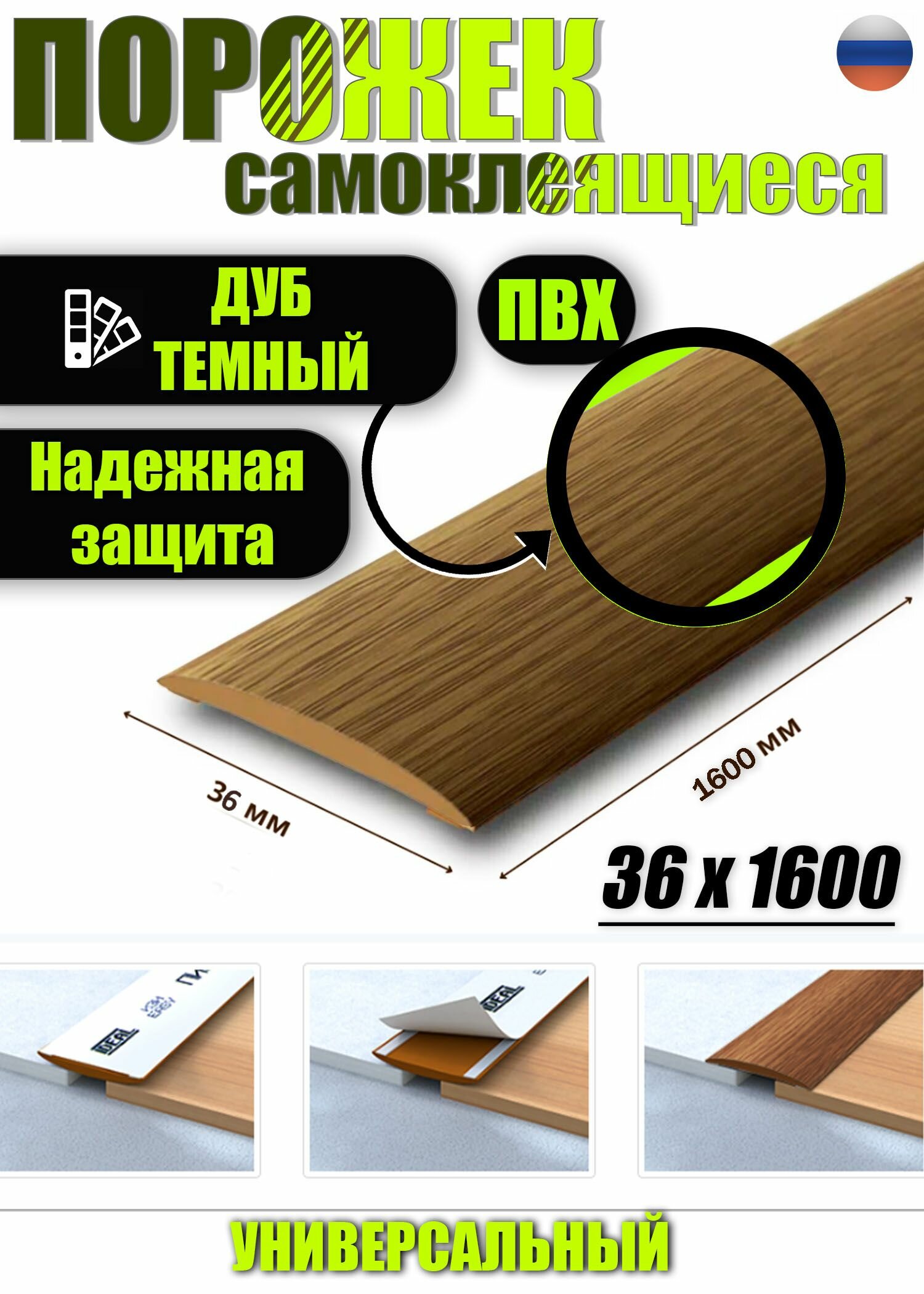 Купить Порог самоклеящийся из пластика ИЗИ 36.1600.217 для напольных покрытий; Дуб темный 36 х 1600 мм
