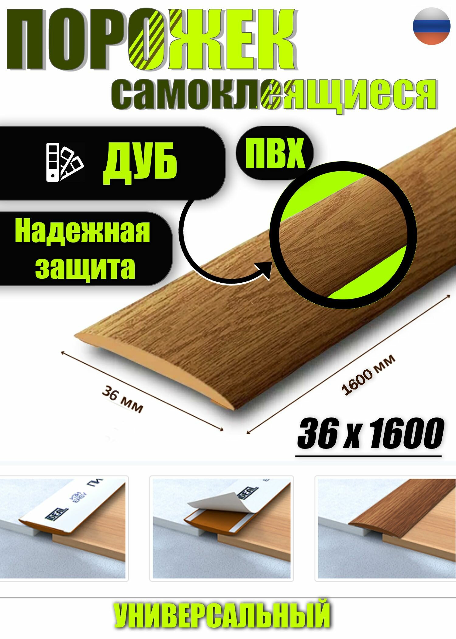 Порог самоклеящийся из пластика ИЗИ 36.1600.206 для напольных покрытий; Дуб коньячный 36 х 1600 мм