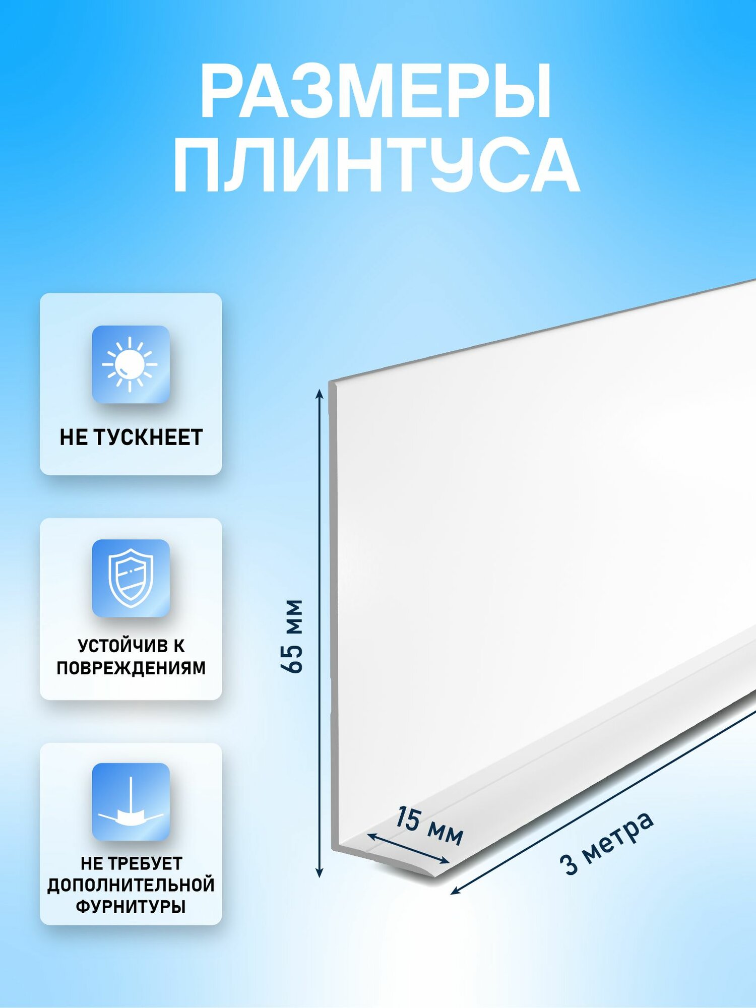 Ниже Вы можете прочитать отзывы на ПВХ Гибкий плинтус напольный самоклеящийся, 65мм, 3 м, Белый, ознакомится с подробными характеристиками, посмотреть интересные обзоры и фотографии на ПВХ Гибкий плинтус напольный самоклеящийся, 65мм, 3 м, Белый.