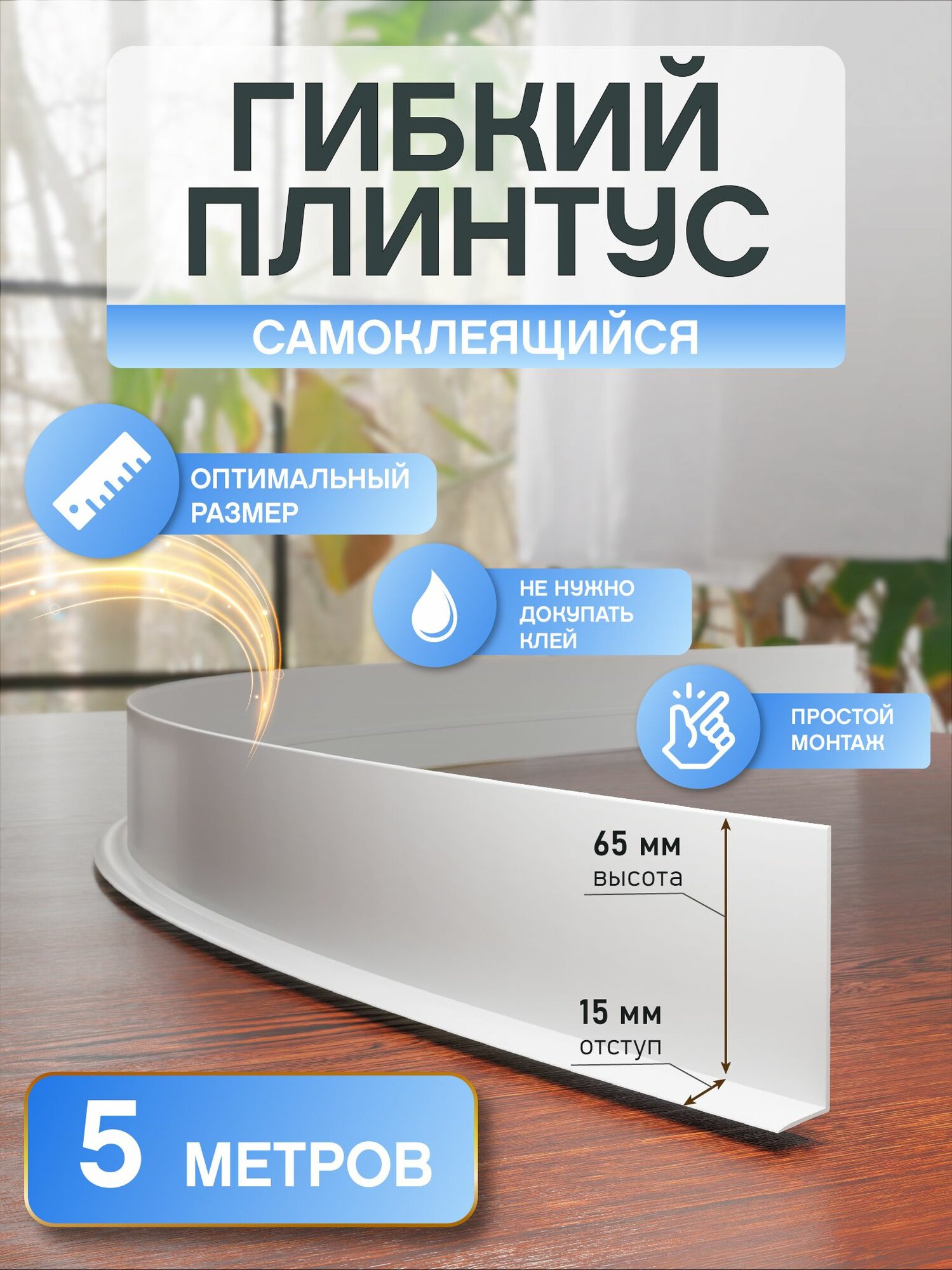 СохранитьПВХ Гибкий плинтус для пола самоклеящийся, 65мм, 5 м, Белый интересное: