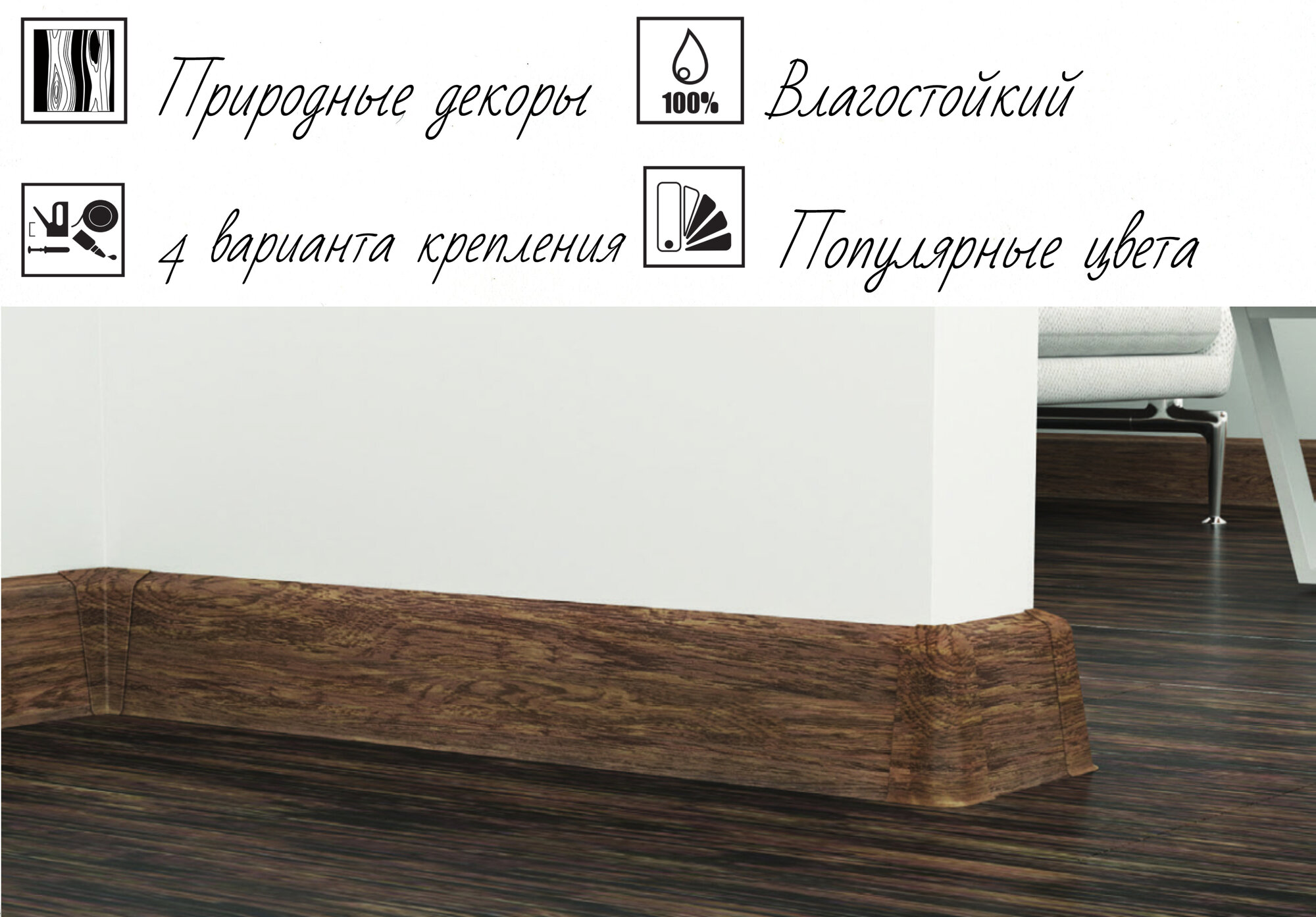 Плинтус 4шт. напольный НЕ выцветающий польша ПВХ Cezar 2,5м №118 под дерево