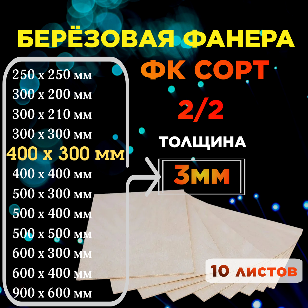 Купить Фанера 3 мм 400*300 10 листов. ФК сорт 2/2