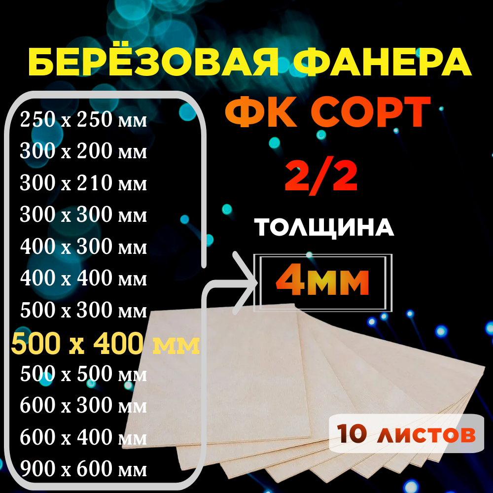 Фанера 4 мм 500*400 10 листов. ФК, сорт 2/2 интересное: