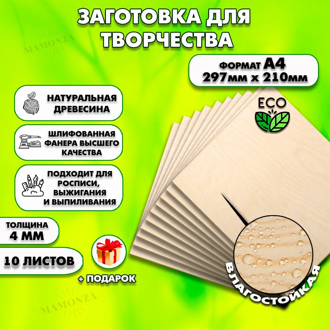 Купить Фанера для уроков труда, рисования и творчества, Размер А4 (210х297), 10 штук, Толщина 4мм, сорт высший сорт