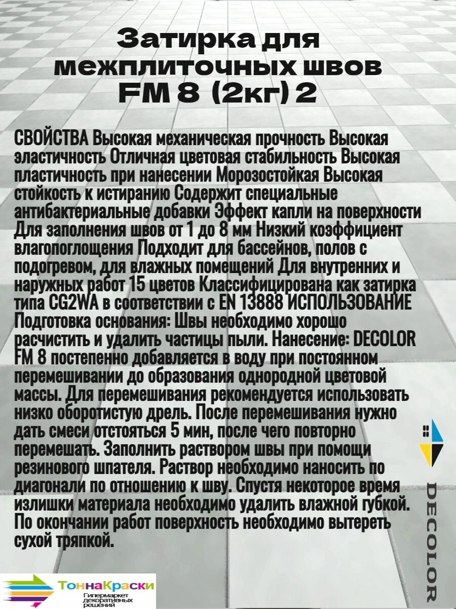 Полимерцементная затирка для заполнения межплиточных швов DECOLOR FM 8 серая (2кг)