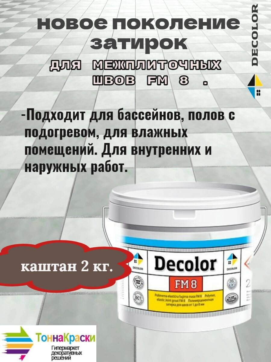 СохранитьПолимерцементная затирка для заполнения межплиточных швов DECOLOR FM 8 каштан (2кг) интересное: