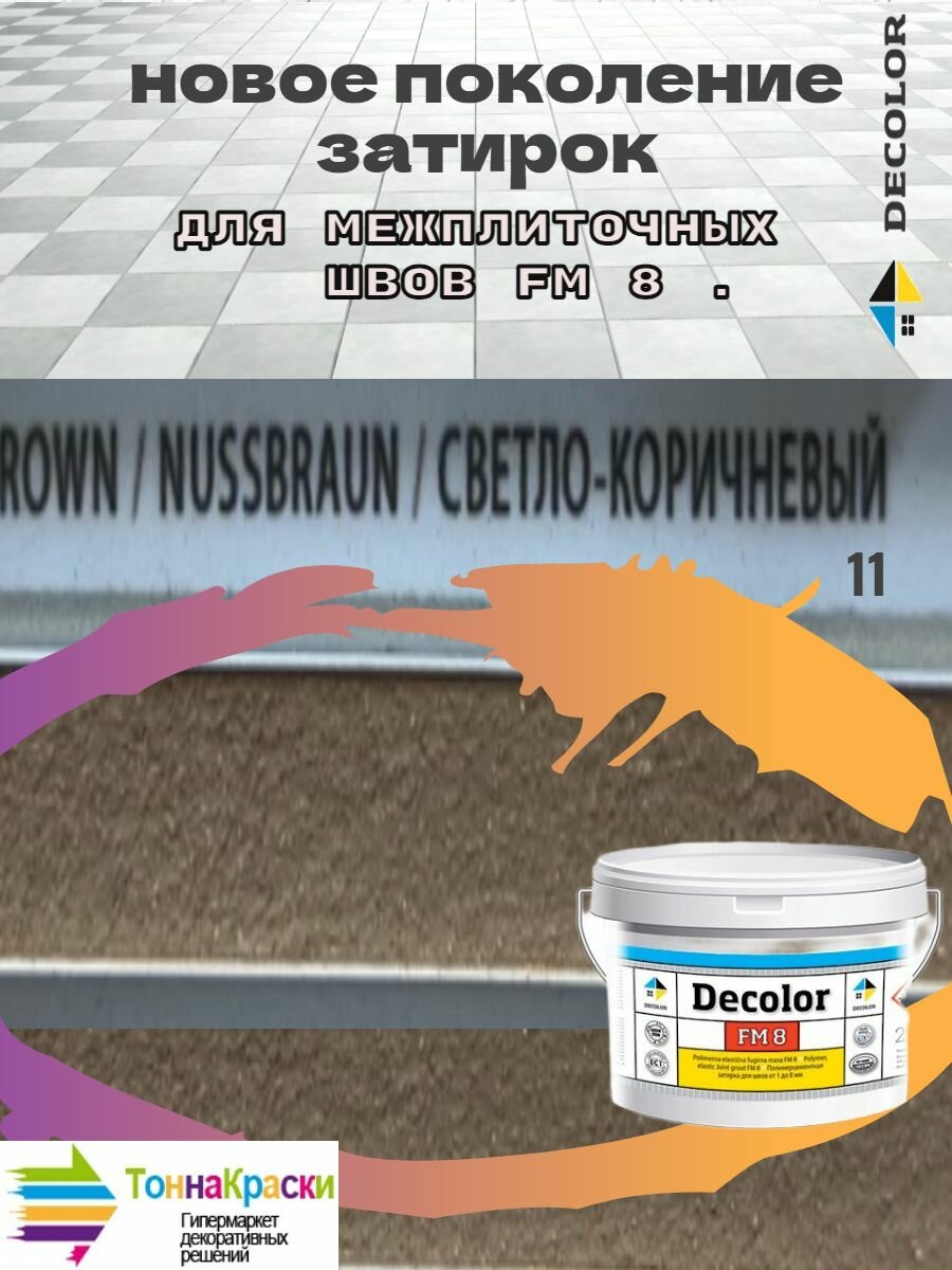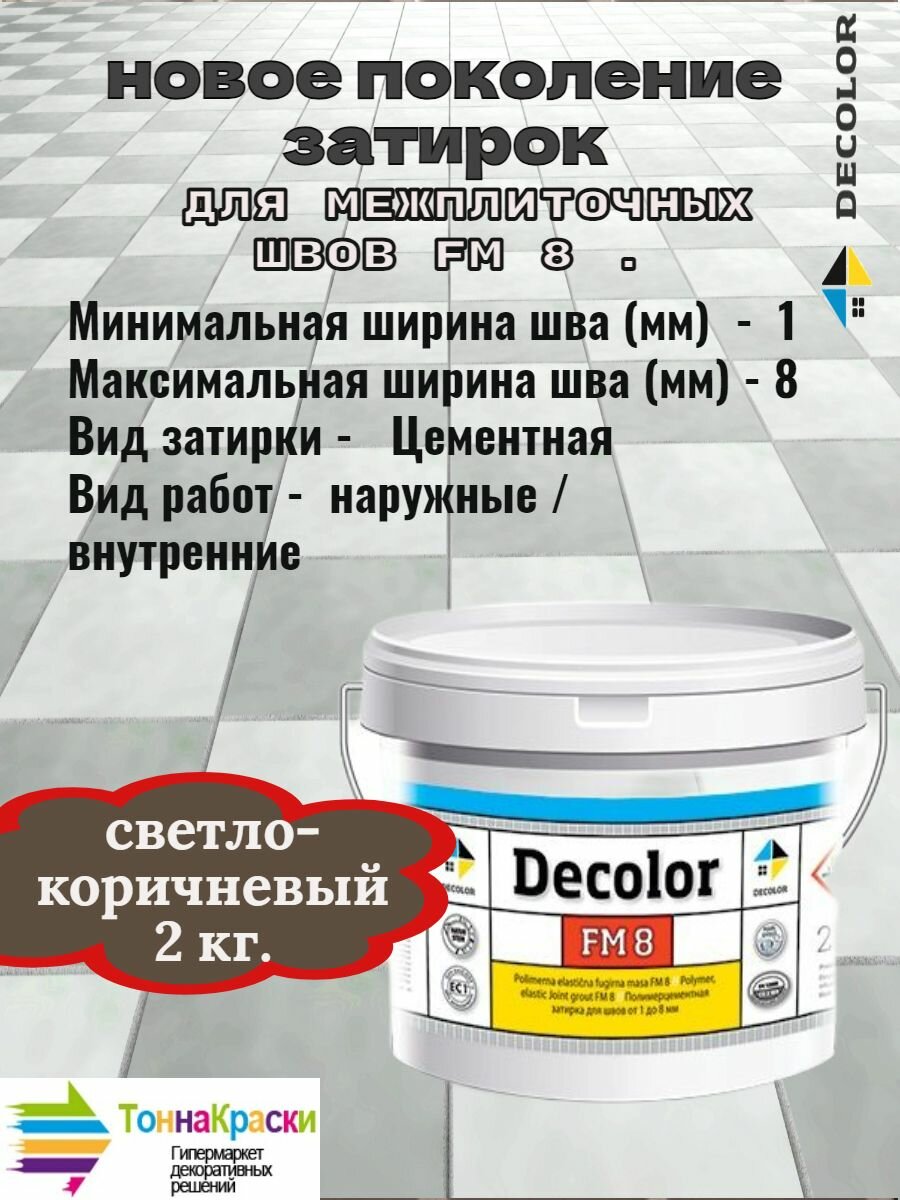 Полимерцементная затирка для заполнения межплиточных швов DECOLOR FM 8 светло- коричневая (2кг)
