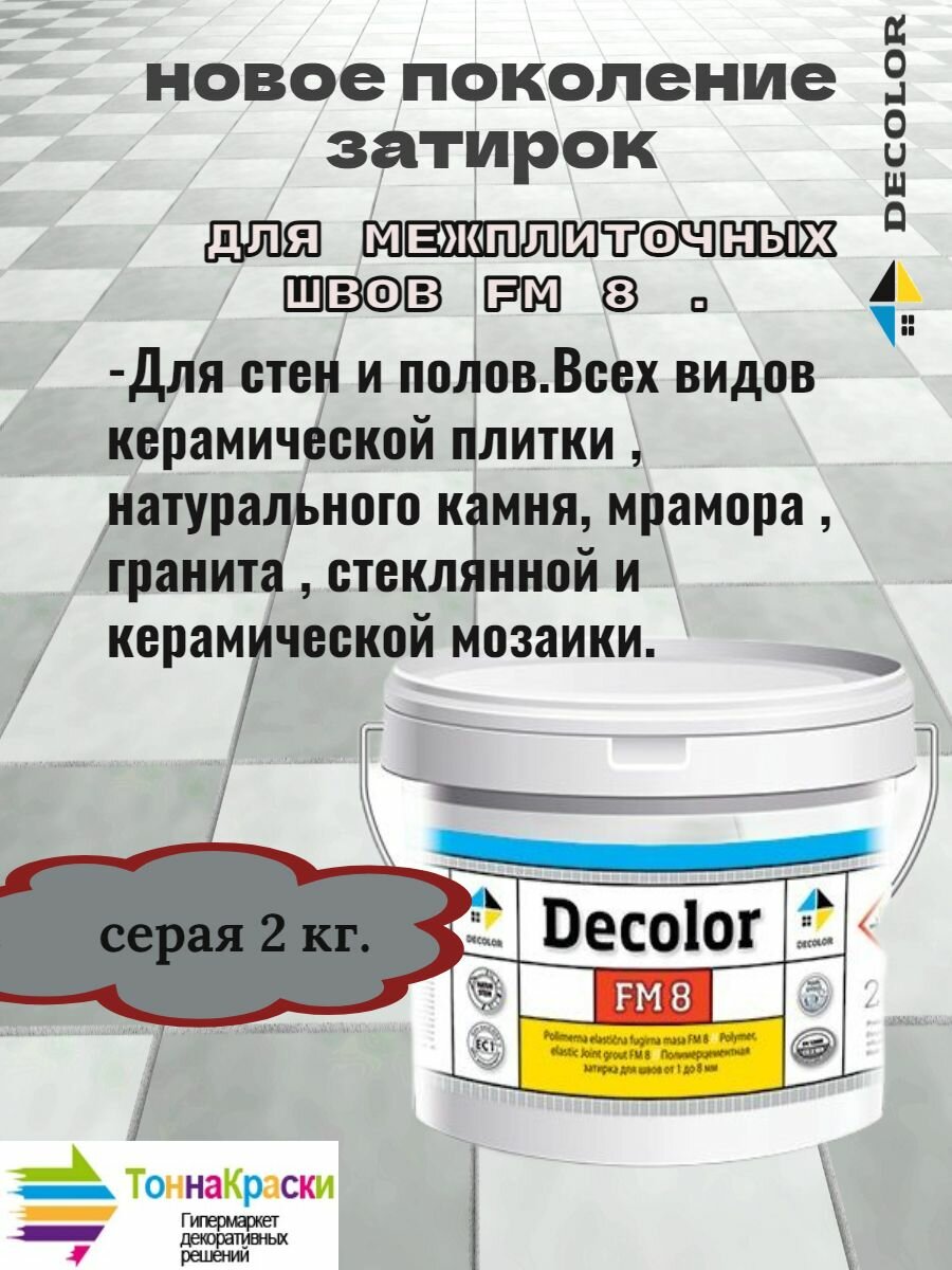 Ниже Вы можете прочитать отзывы на Полимерцементная затирка для заполнения межплиточных швов DECOLOR FM 8 серая (2кг), ознакомится с подробными характеристиками, посмотреть интересные обзоры и фотографии на Полимерцементная затирка для заполнения межплиточных швов DECOLOR FM 8 серая (2кг).