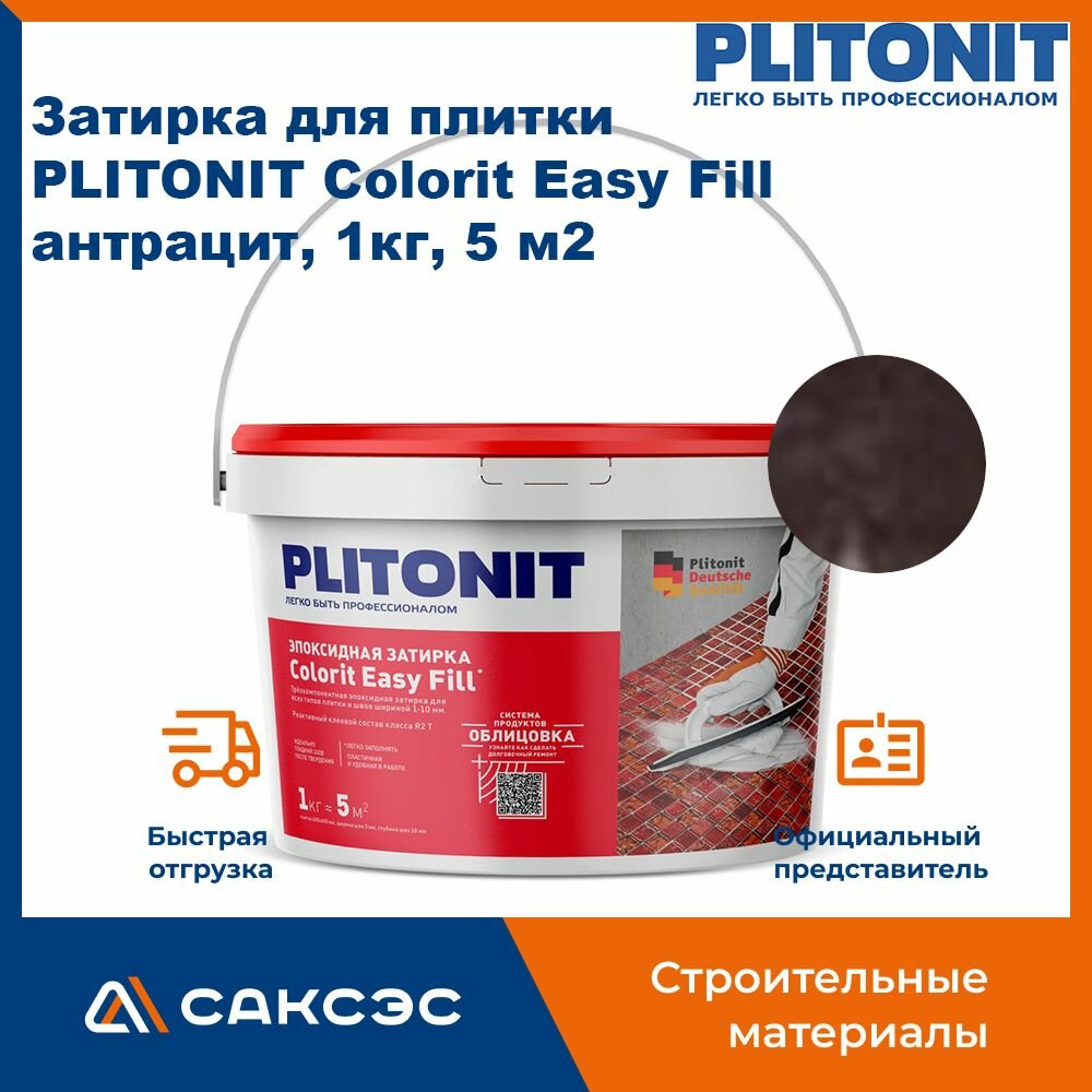 Купить Затирка для плитки PLITONIT Colorit Easy Fill, 1 кг, антрацит