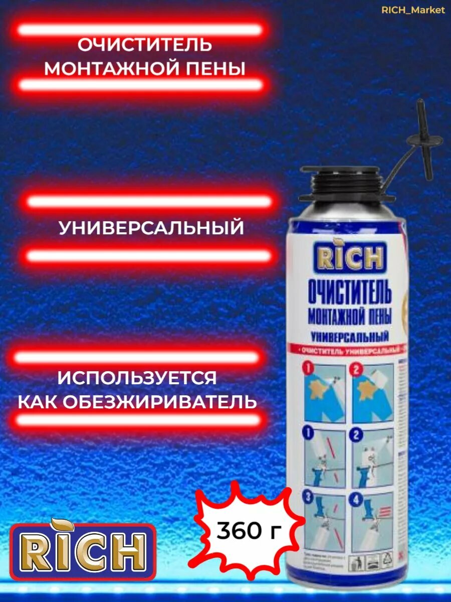 Очиститель монтажной пены RICH, профессиональный, с насадкой распылителем, 500мл интересное: