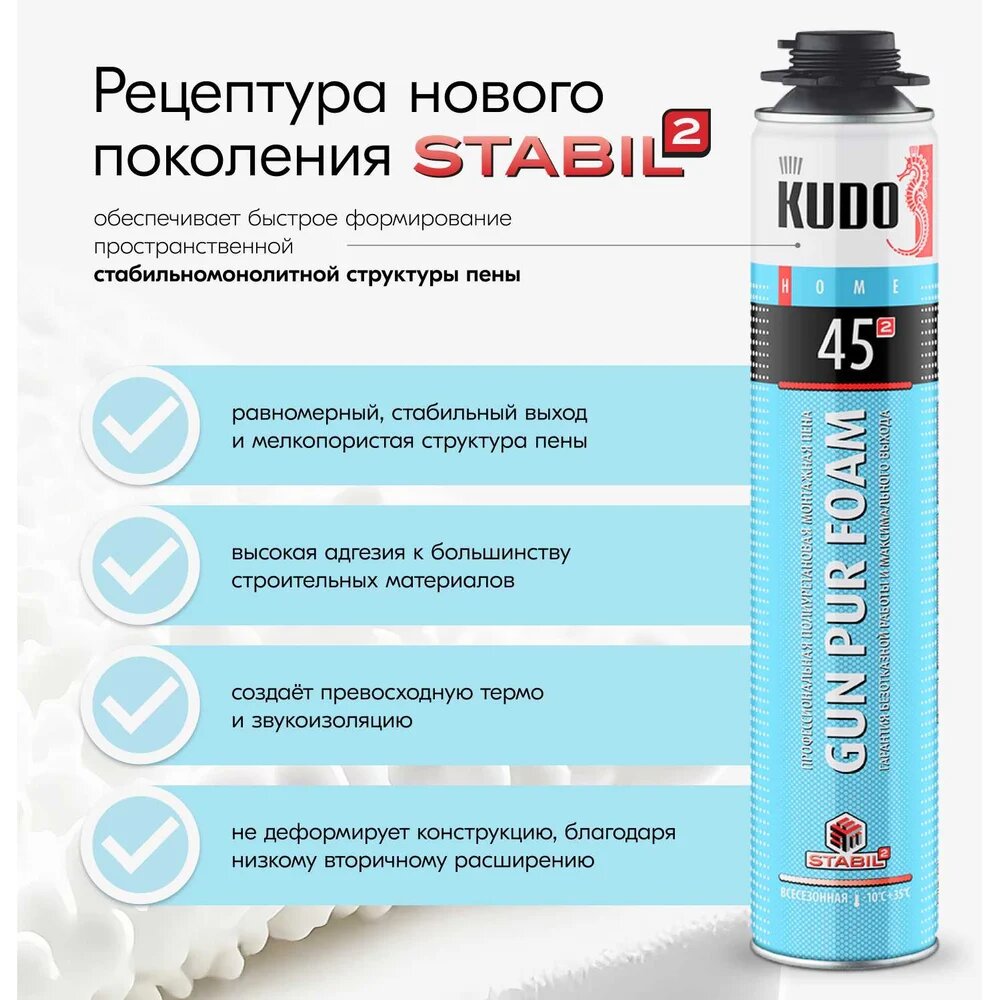Профессиональная всесезонная полиуретановая монтажная пена KUDO HOME 45 интересное: