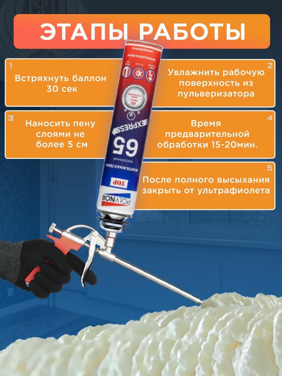 СохранитьПена монтажная под пистолет всесезонная 1 шт. Полинор строительная интересное: