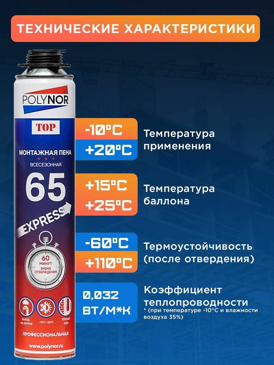 Пена монтажная под пистолет всесезонная 7 шт. Полинор строительная