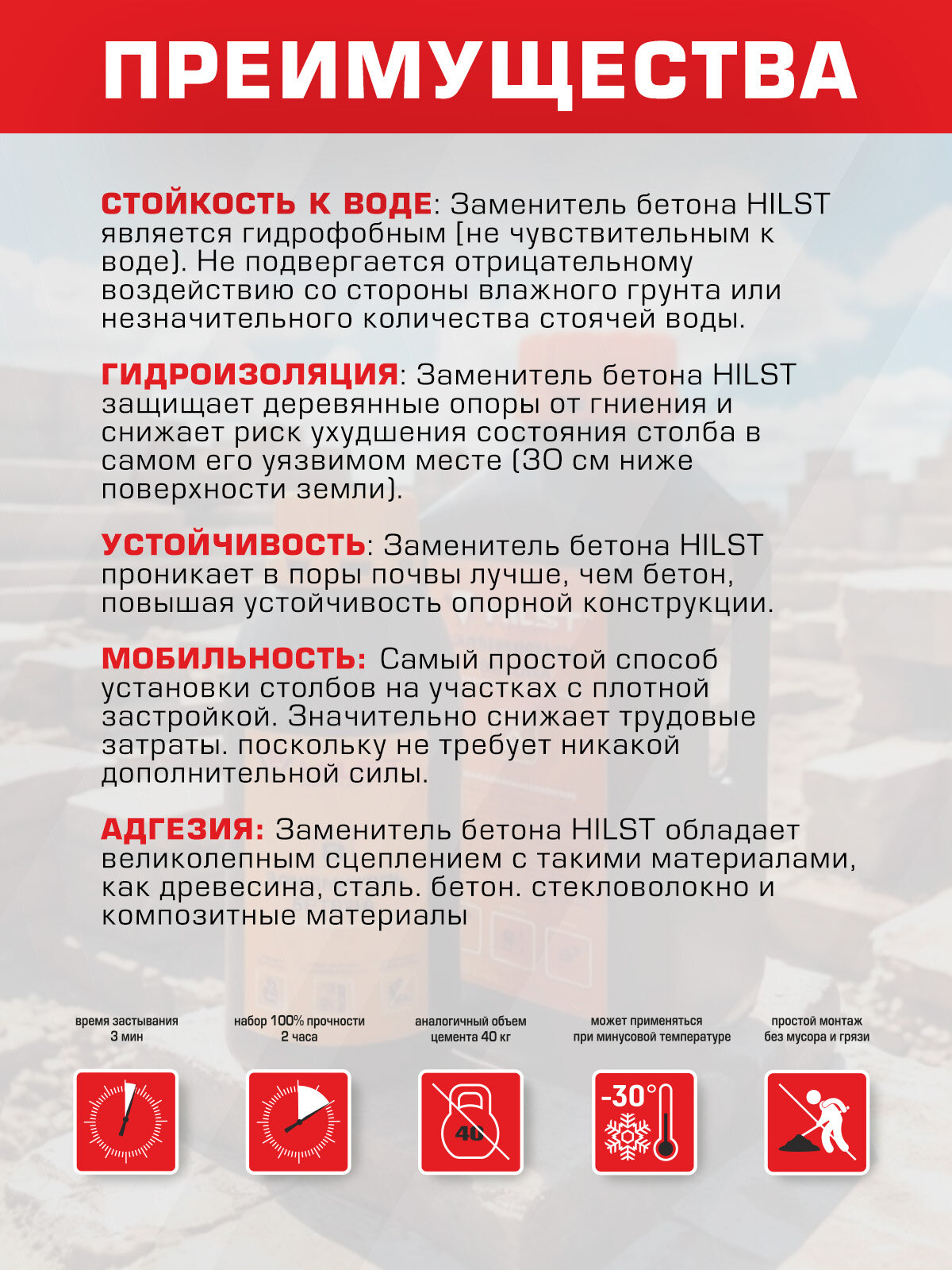 Заменитель бетона HILST Standart 5 литров для 10 столбов