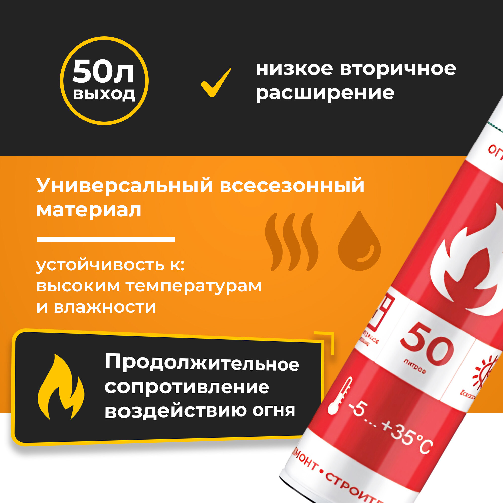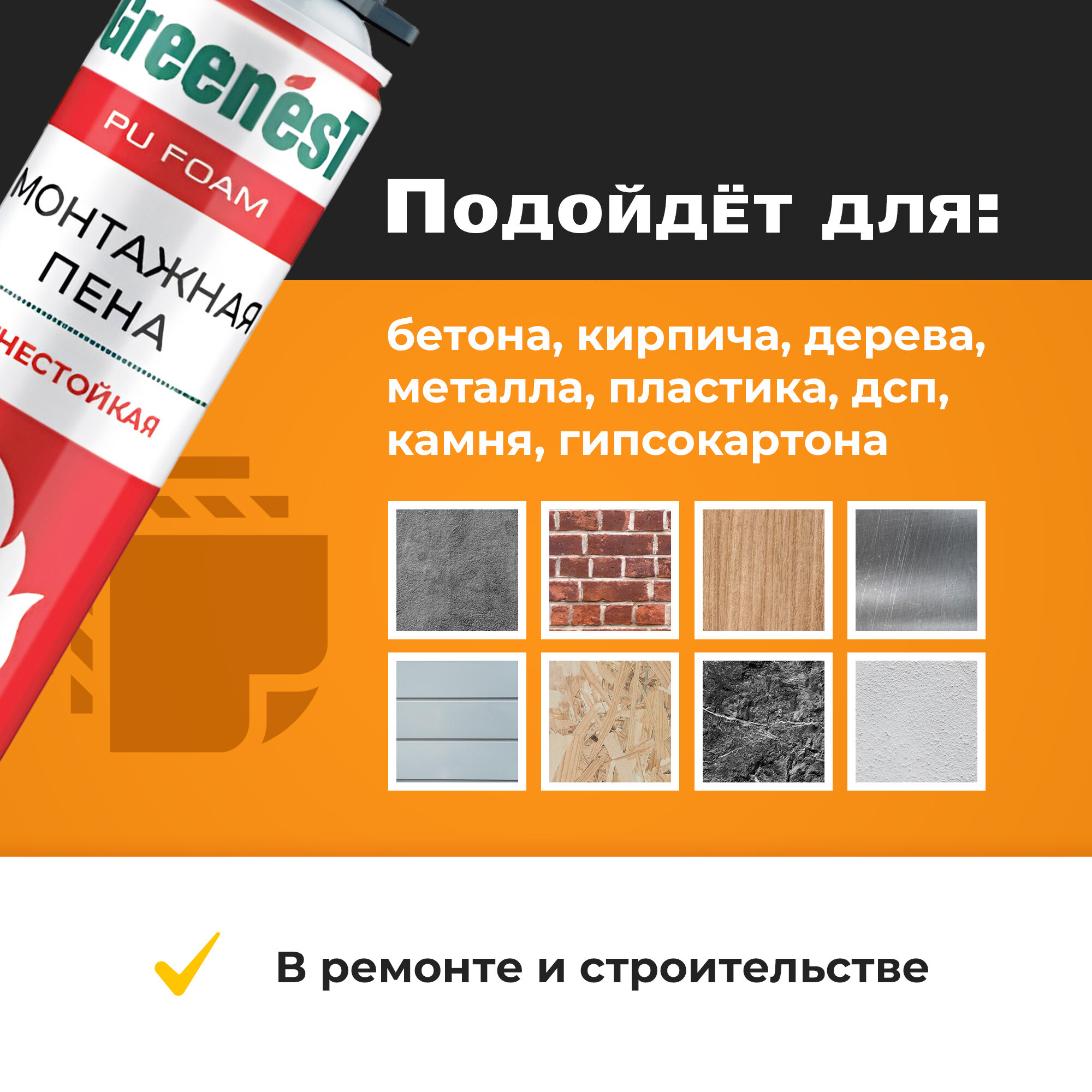 Монтажная пена GreenesT PU FOAM 50 профессиональная огнестойкая всесезонная