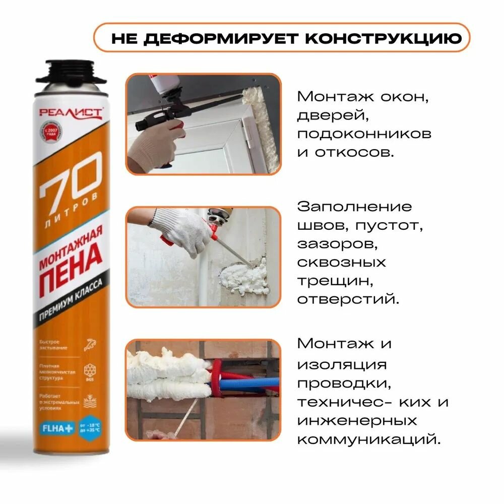 Профессиональная пена монтажная REALIST PRO Orange 70 л, зимняя 1 шт для пистолета интересное: