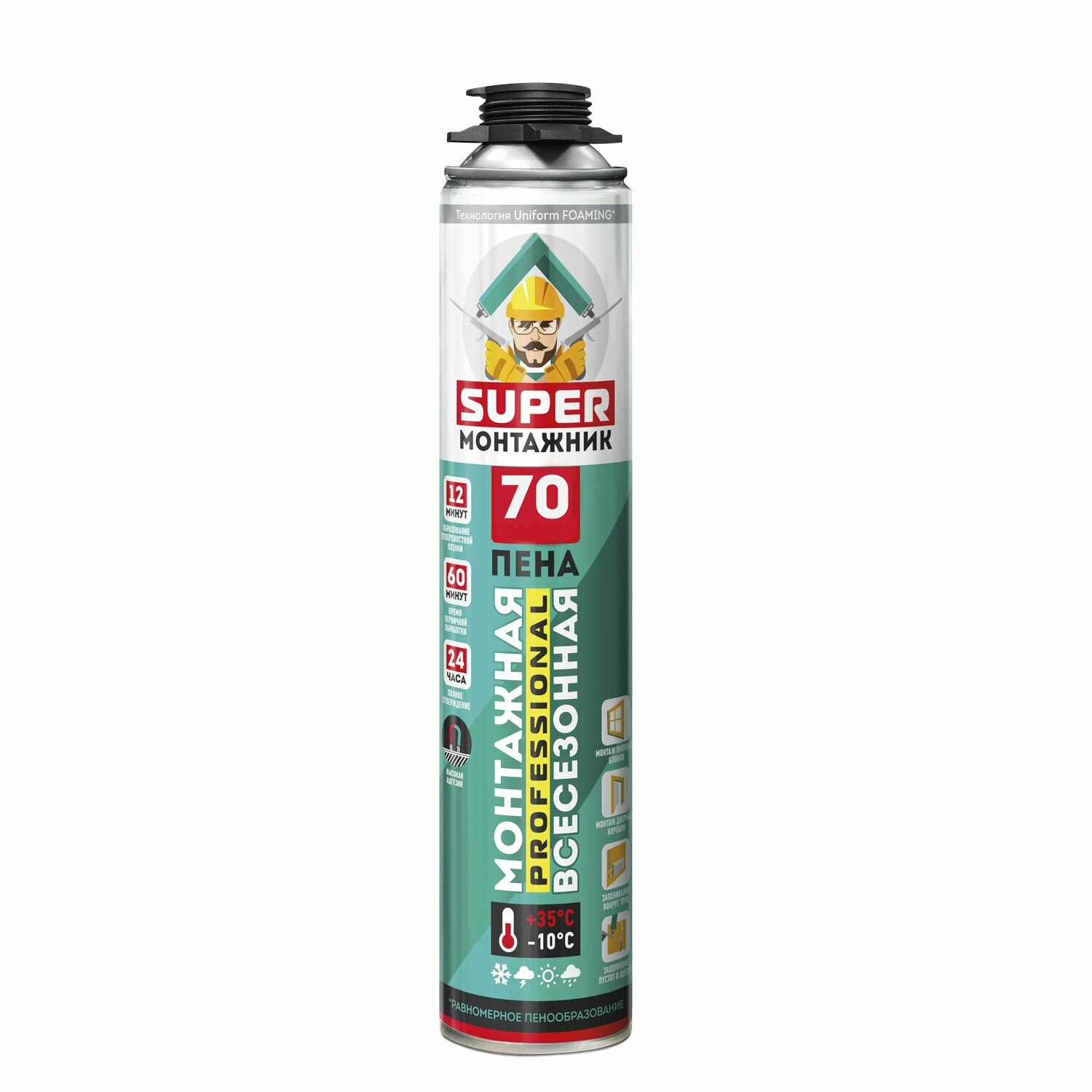 Купить Монтажная пена SUPER монтажник 70 профессиональная всесезонная, 1000 мл