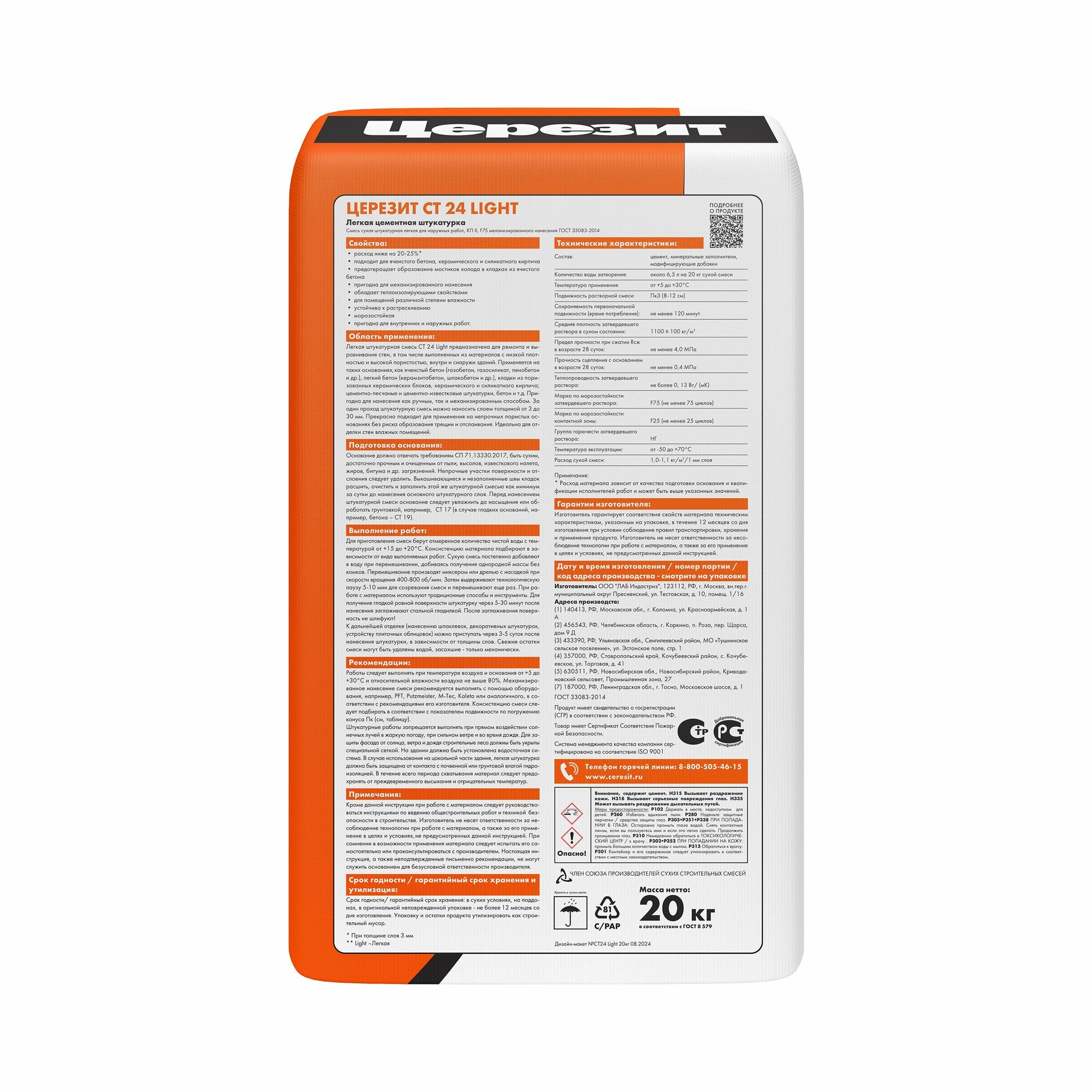Ниже Вы можете прочитать отзывы на Церезит CT24 LIGHT 20 кг, ознакомится с подробными характеристиками, посмотреть интересные обзоры и фотографии на Церезит CT24 LIGHT 20 кг.