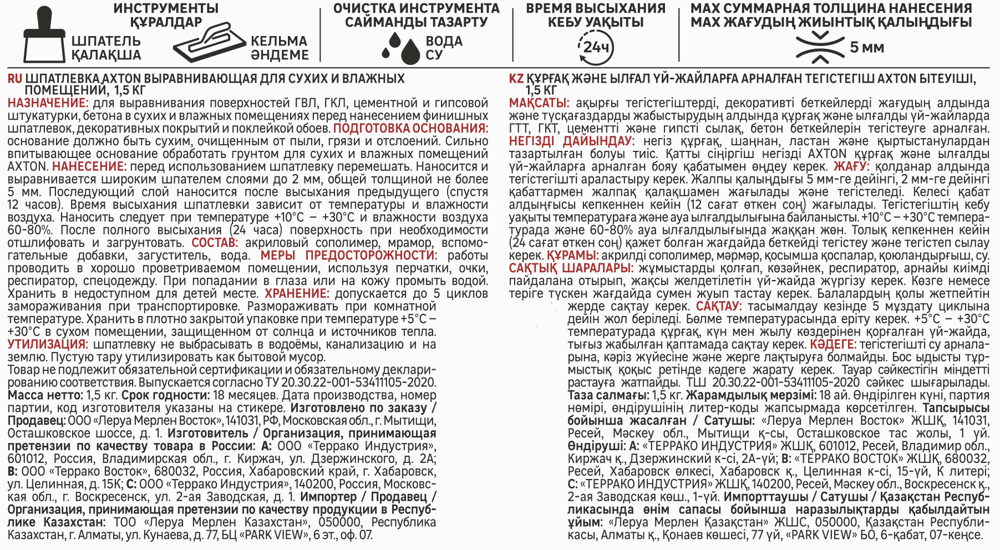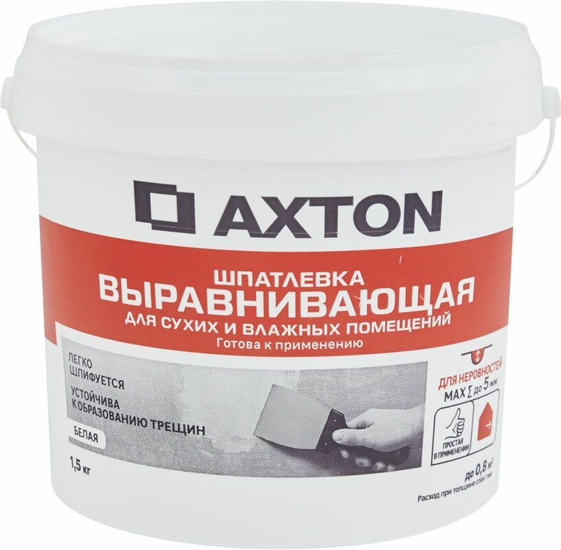 Акстон шпатлевка выравнивающая готовая (1.5кг) / AXTON шпаклевка выравнивающая для сухих и влажных помещений (1.5кг) интересное: