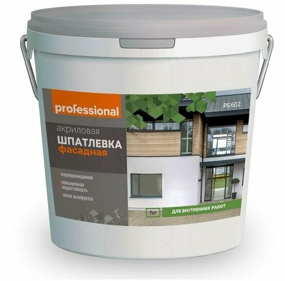 Шпатлевка для стен акриловая фасадная PROFESSIONAL влагостойкая, шпаклевка для стен готовая для внутренних и наружных работ 7кг интересное: