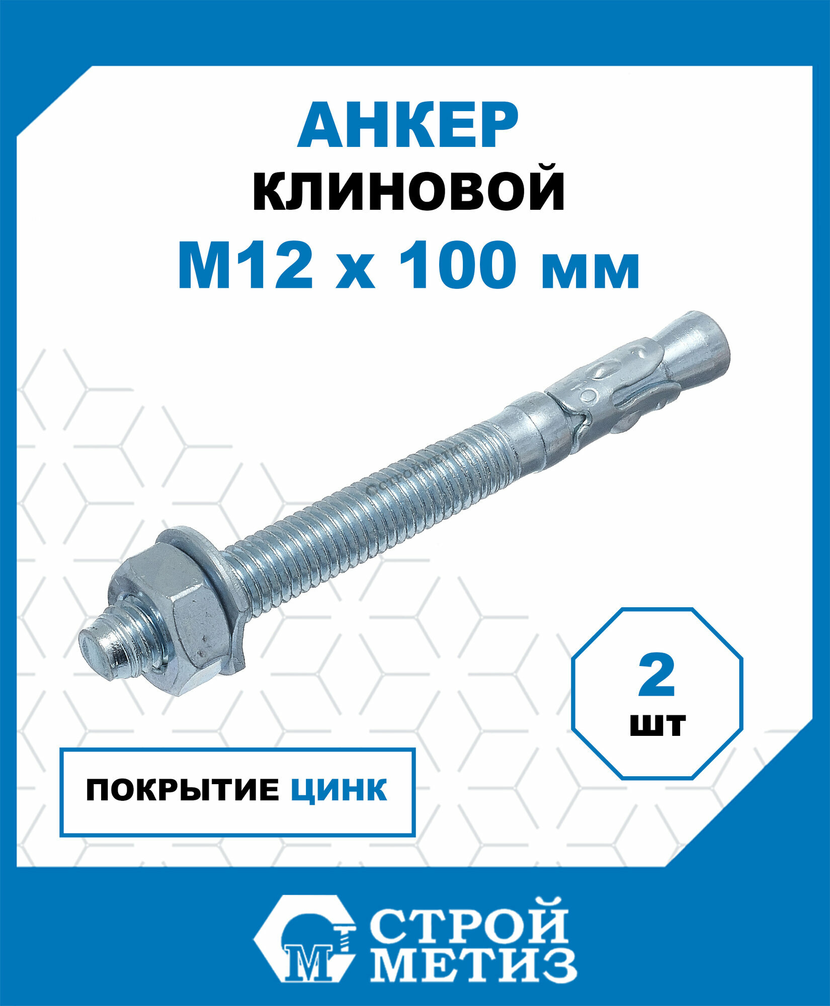 Купить Анкеры Стройметиз клиновые 12х100, сталь, покрытие - цинк, 2 шт.