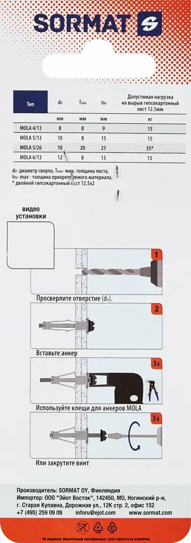 Анкер Молли для гипсокартона Sormat, 6x72 мм, металл, 2 шт. интересное: