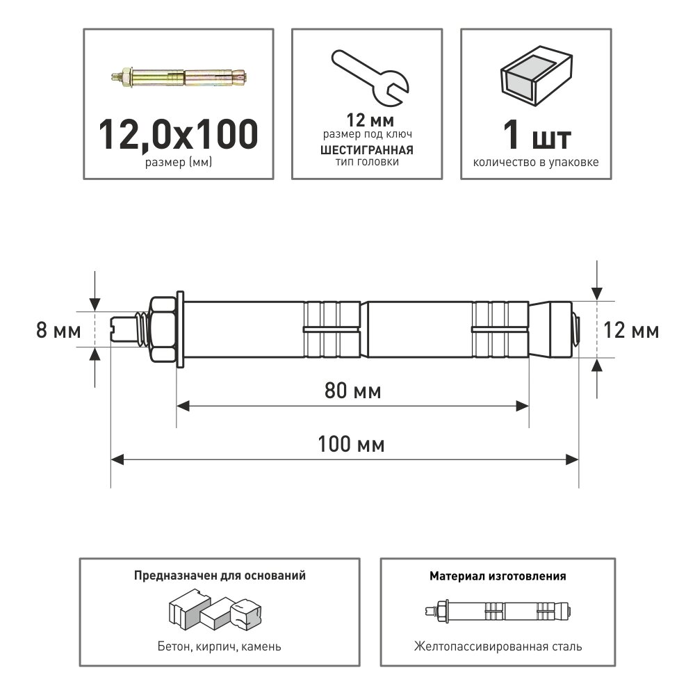 Анкерный болт 10х 80 (1шт)