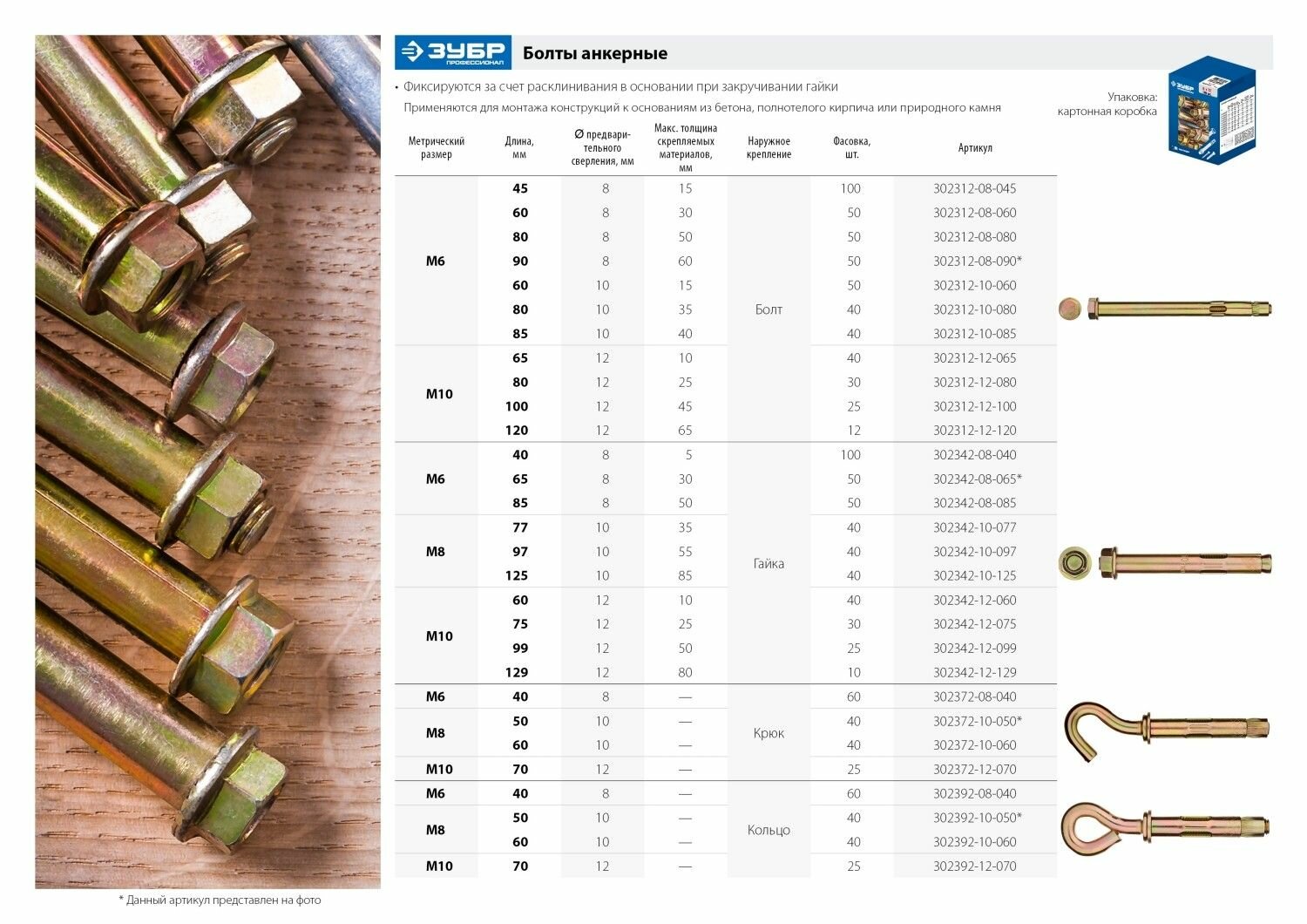 Анкерный болт, ЗУБР 8 х 60 мм, 50 шт, Профессионал (302312-08-060) интересное: