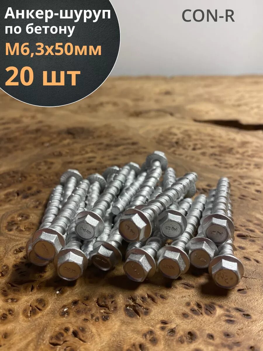 Купить Анкер-шуруп по бетону М6,3х50 мм CON-R , 20 шт.