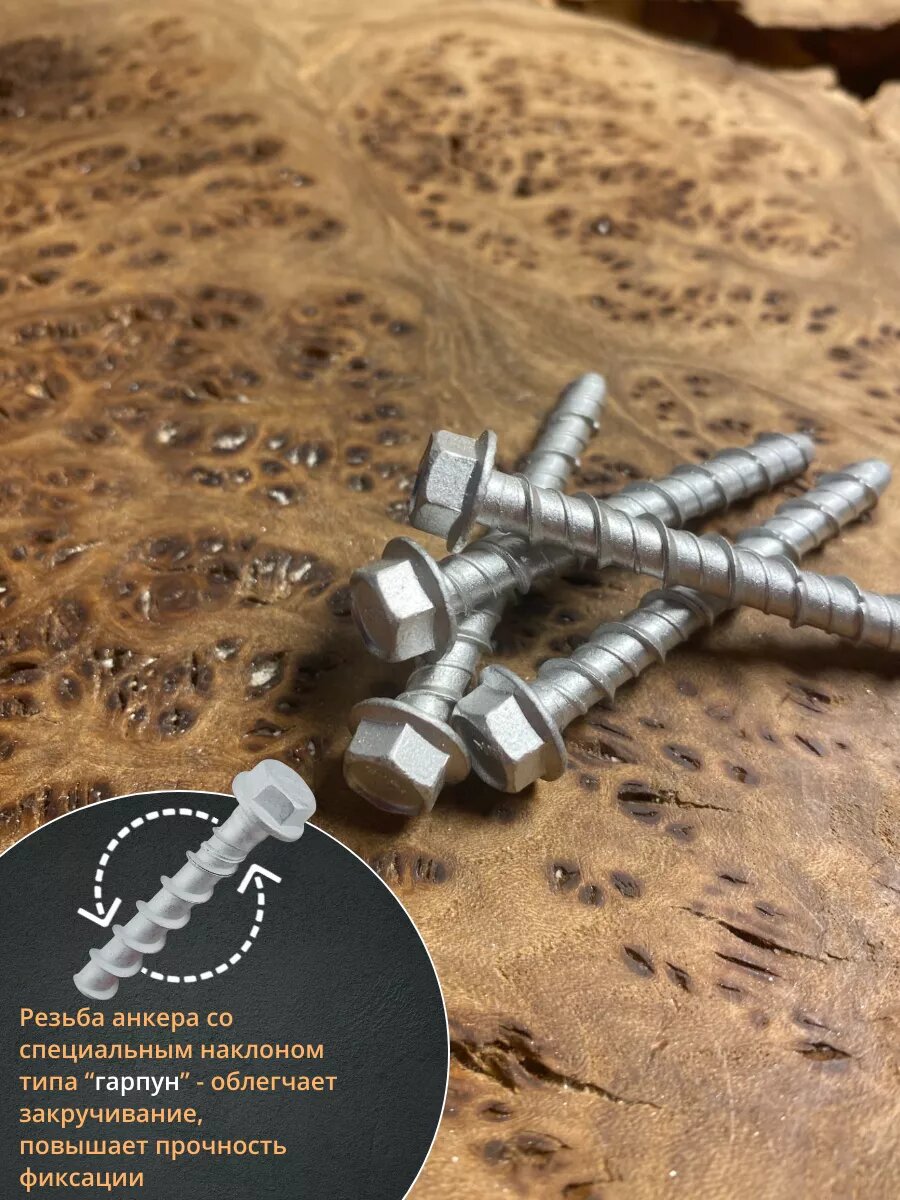 Анкер-шуруп по бетону М6,3х50 мм CON-R , 4 шт. интересное: