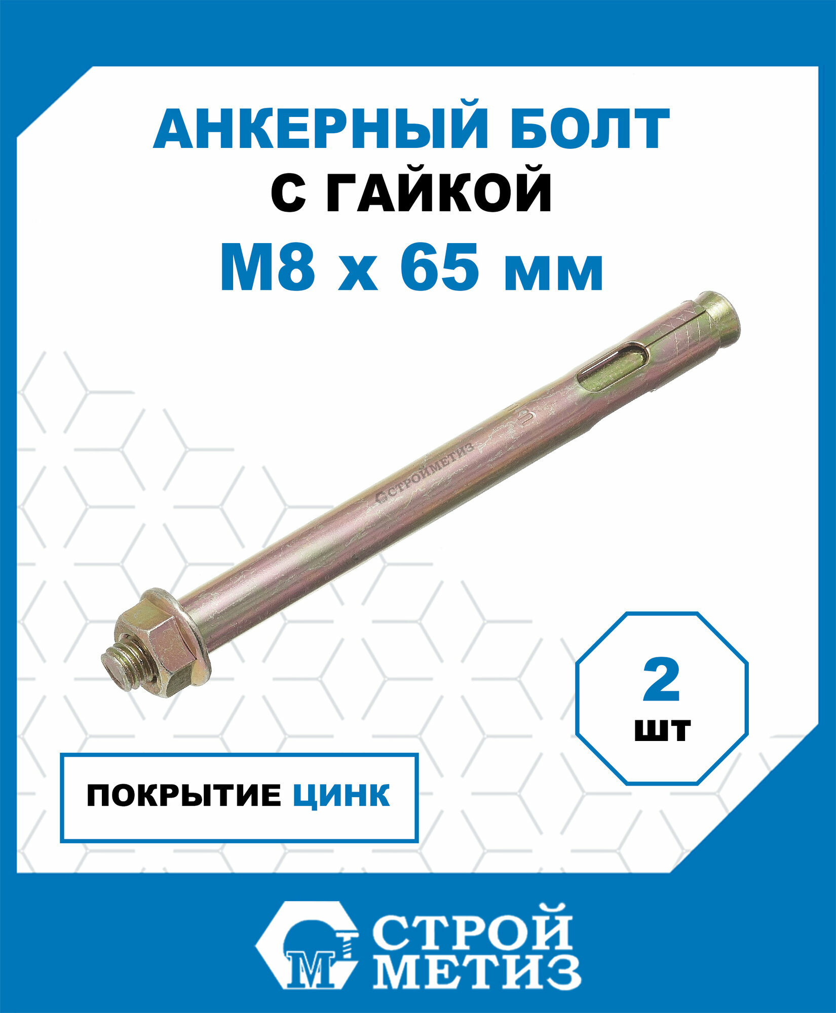 Купить Анкерные болты Стройметиз с гайкой 8х65, сталь, покрытие - цинк, 2 шт.
