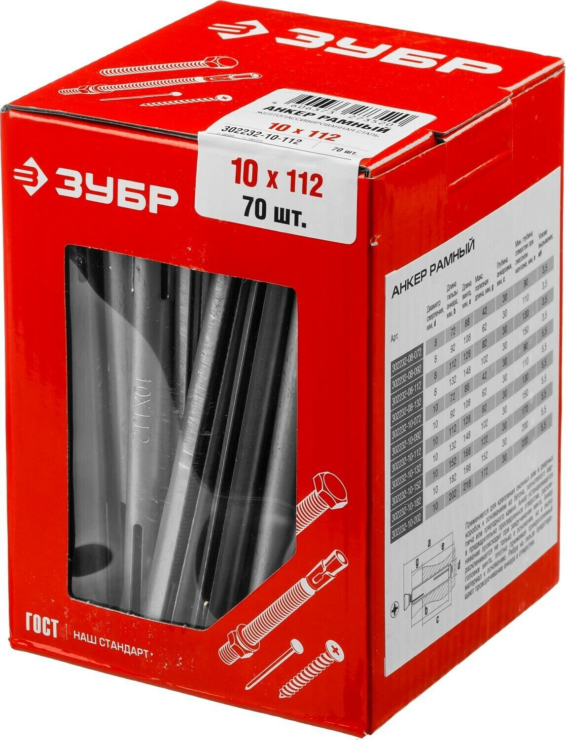 ЗУБР 10 х 112 мм, 70 шт, рамный анкер (302232-10-112) интересное: