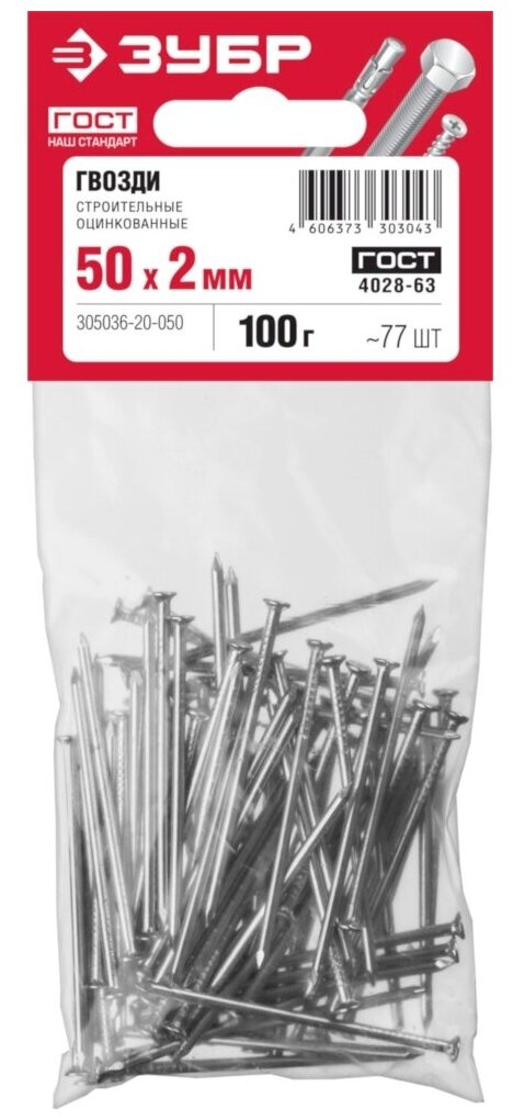 Строительные гвозди ЗУБР ГОСТ 4028-63 цинк 50 х 2.0 мм 100 гр. ( 77 шт.) 305036-20-050 интересное: