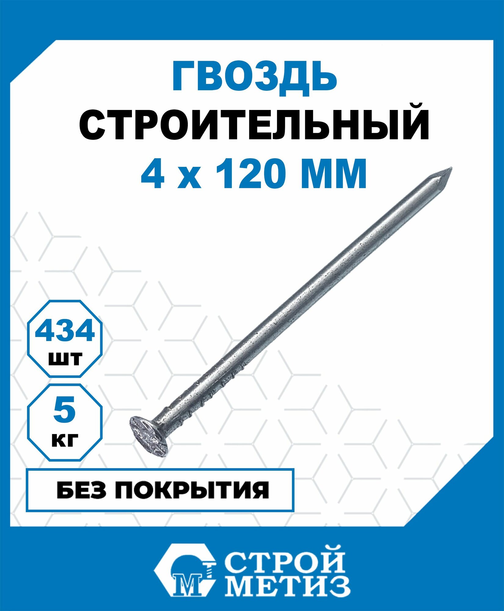 Купить Гвозди Стройметиз строительные 4х120, сталь, без покрытия, 5 кг (434 шт.)