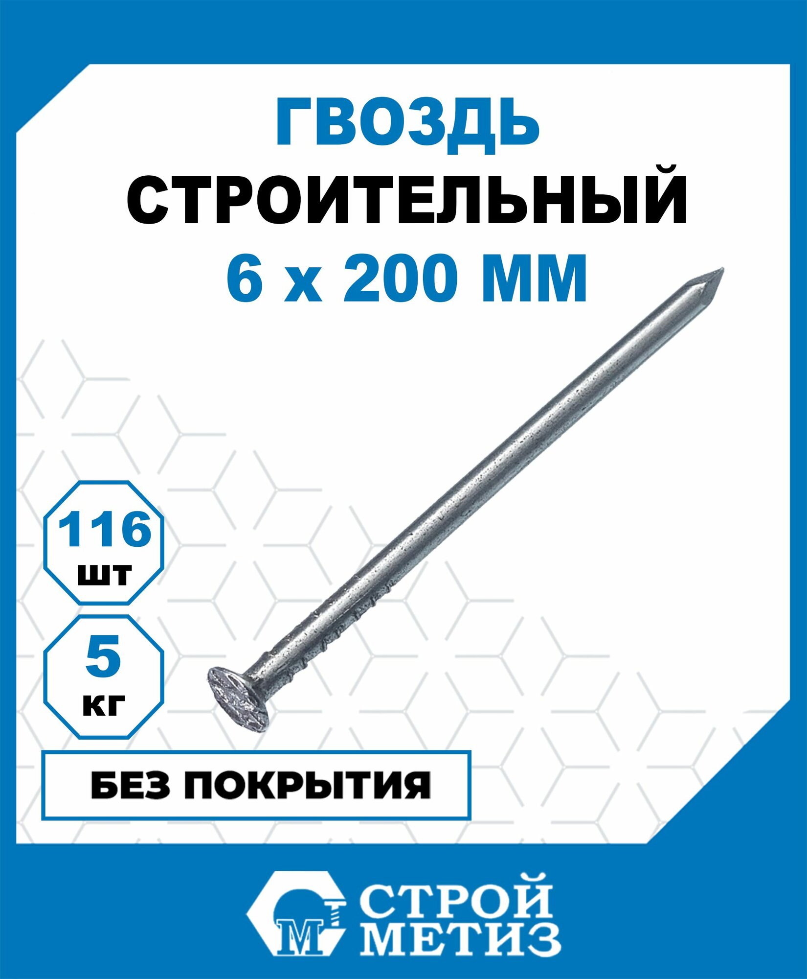 Купить Гвозди Стройметиз строительные 6х200, сталь, без покрытия, 5 кг (116 шт.)