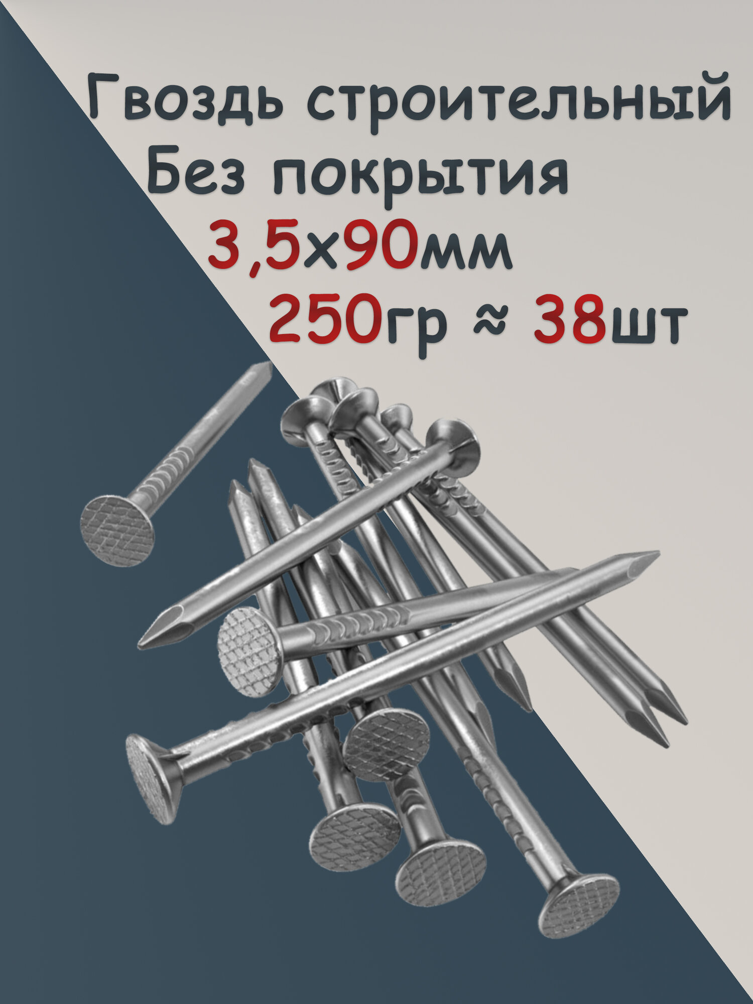 Гвоздь 90х3,5 250гр. строительный РМЗ, плоский, сталь, покрытие без покрытия, фасовка вес 250гр