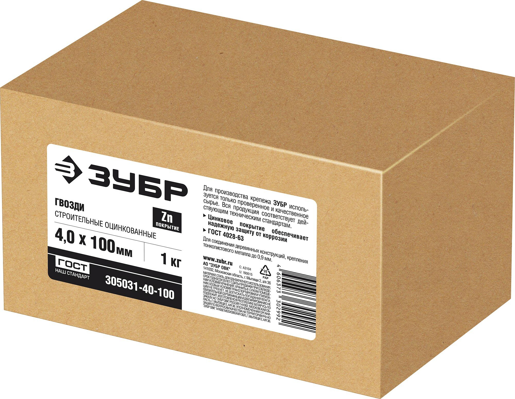 Гвозди строительные оцинкованные Зубр ГОСТ 4028-63. 100 х 4.0 мм. 140 шт. 4-305031-40-100 интересное: